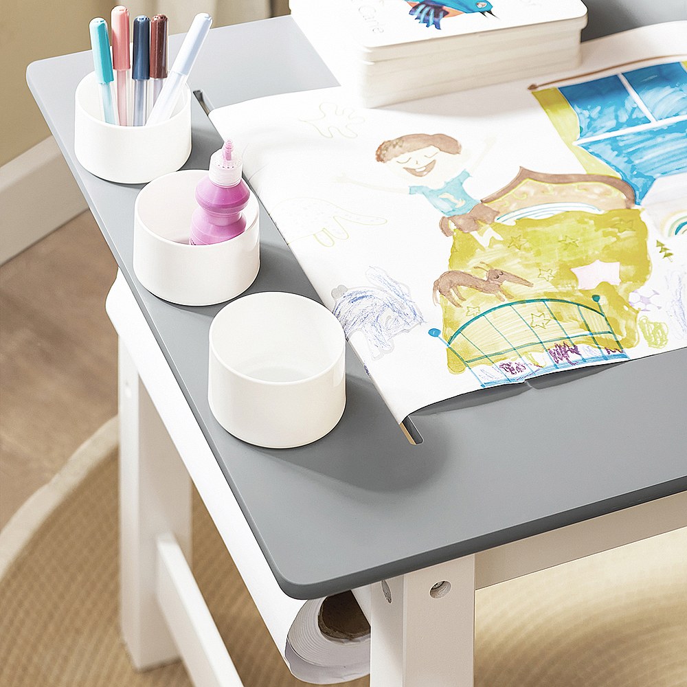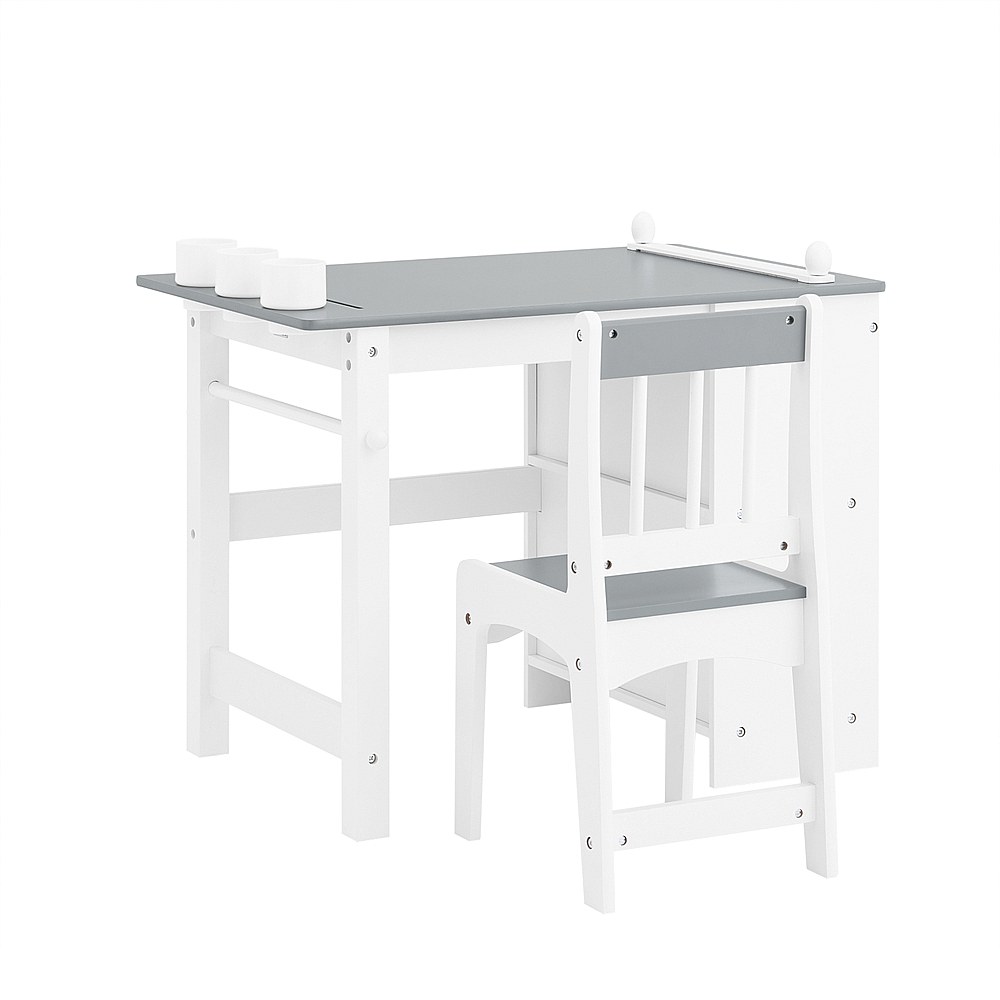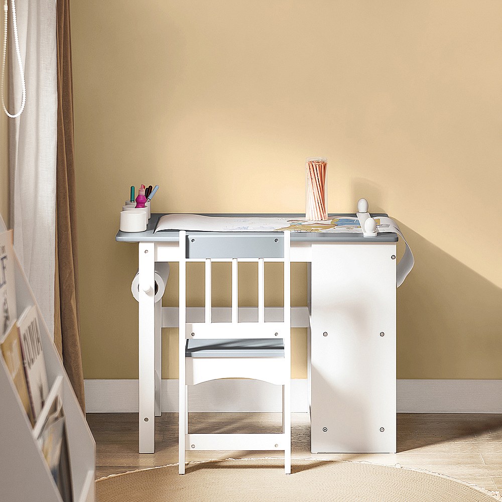 SoBuy Ensemble Bureau Enfant 2 Pièces avec Étagères et Rangement, Gris