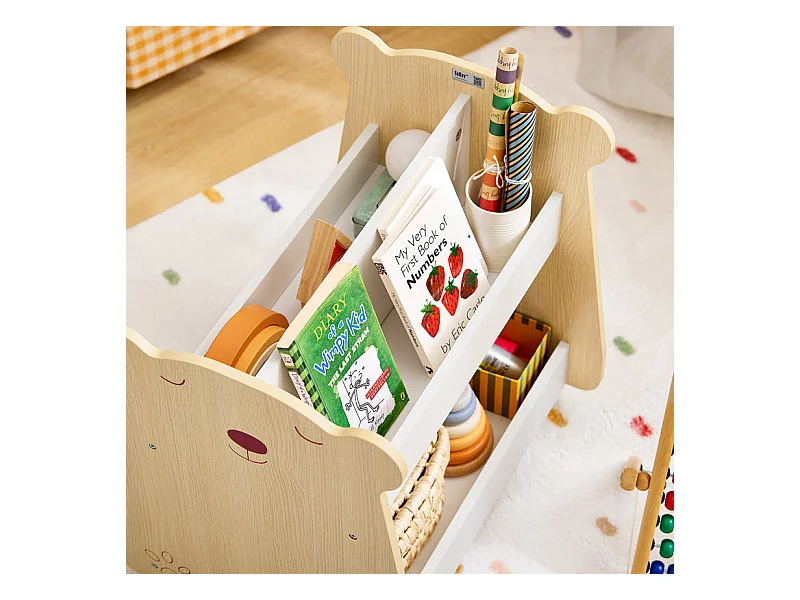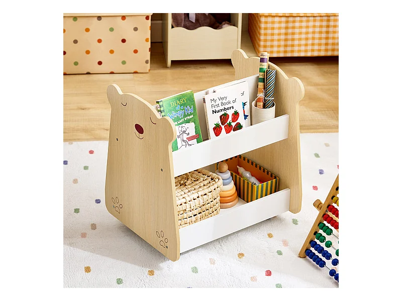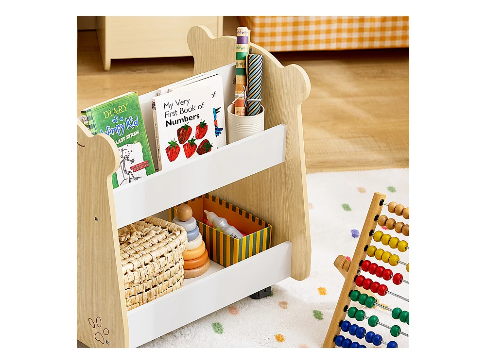 SoBuy KMB103-WN Étagère à Livres pour Enfant, Étagère à Jouets, Bibliothèque à roulettes pour Chambre d'enfant et Salle de Jeux
