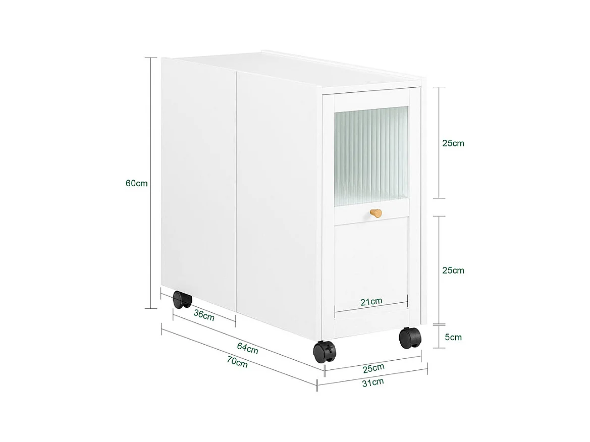 SoBuy Bout de Canapé Table de Chevet avec 1 Tiroir et 2 Portes, L31xP70xH60cm, Blanc FBT150-W