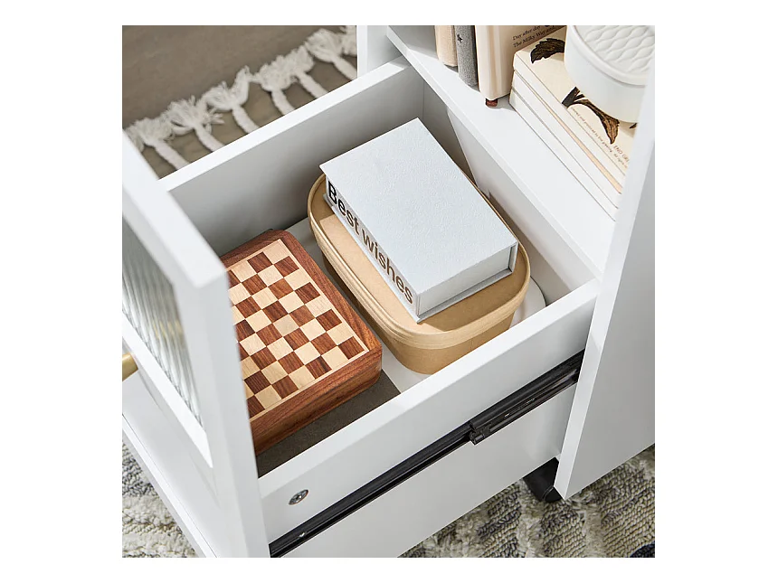 SoBuy FBT155-WN Bout de Canapé sur Roulettes Table de Chevet Table de Nuit Table d'Appoint avec 1 Compartiment Ouvert et 2 Tiroirs