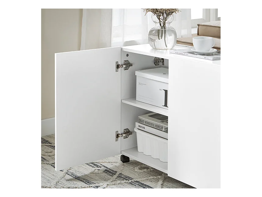 Bout De Canapé Table Café Roulante Avec 2 Étagères De Rangement Bibliothèque À Roulettes, Fbt34-w