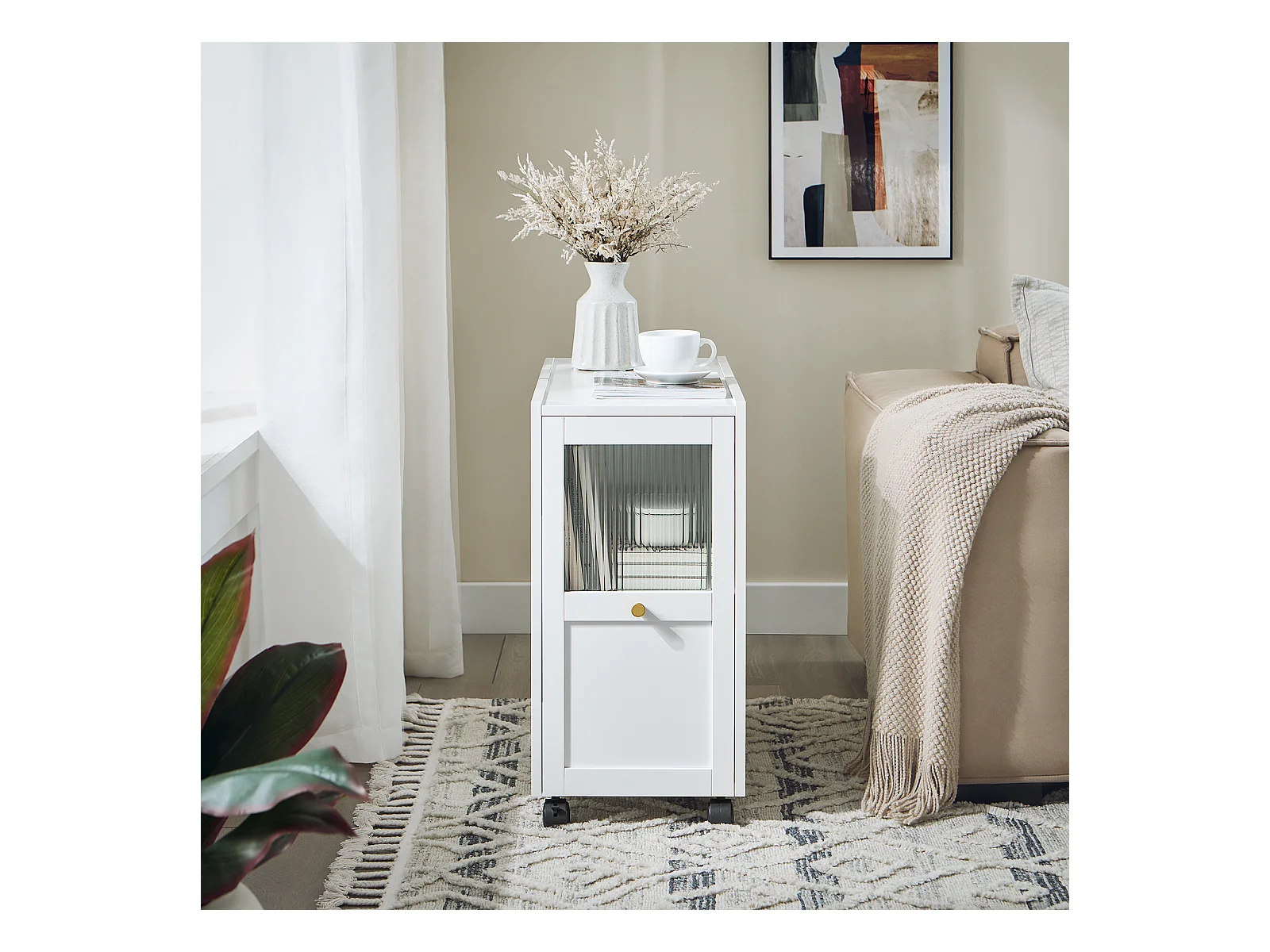 Bout De Canapé Table D’appoint Moderne Roulante Avec 2 Étagères De Rangement, Fbt48-w