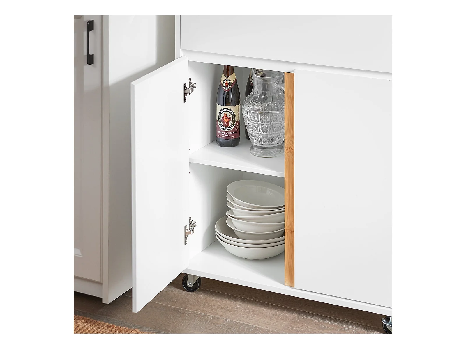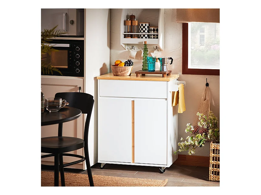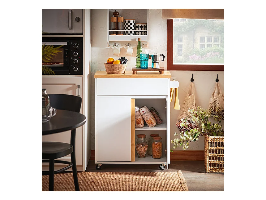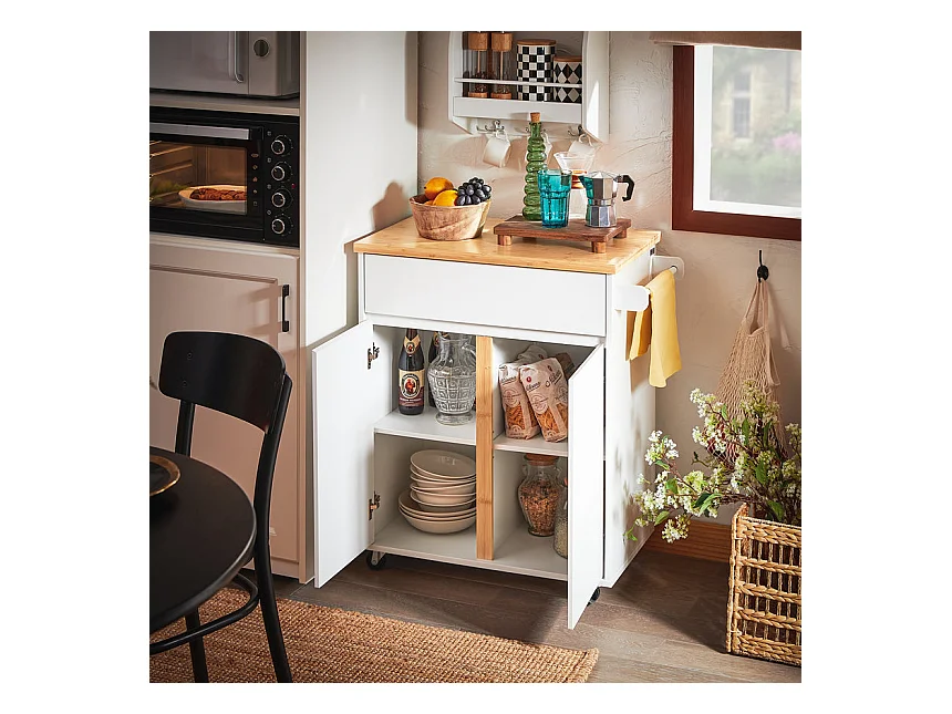 SoBuy FKW125-WN Desserte de Cuisine à roulettes îlot de Cuisine Chariot de Service avec 1 Tiroirs, 2 Portes, 4 étages à l'intérieur