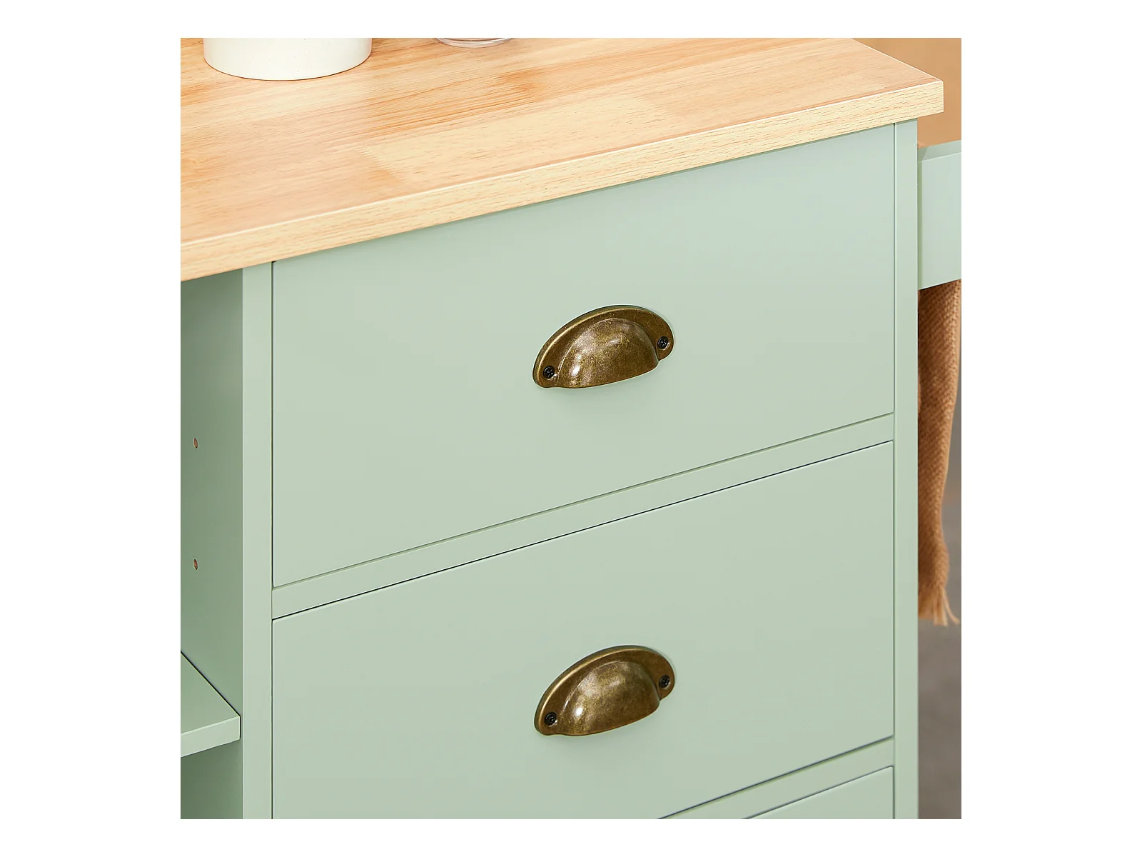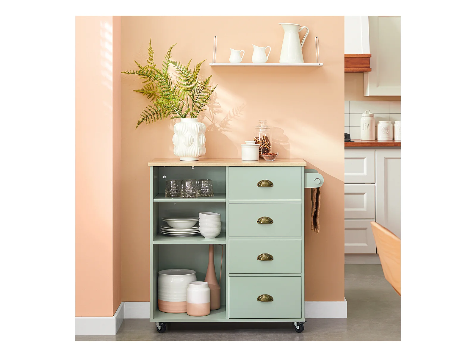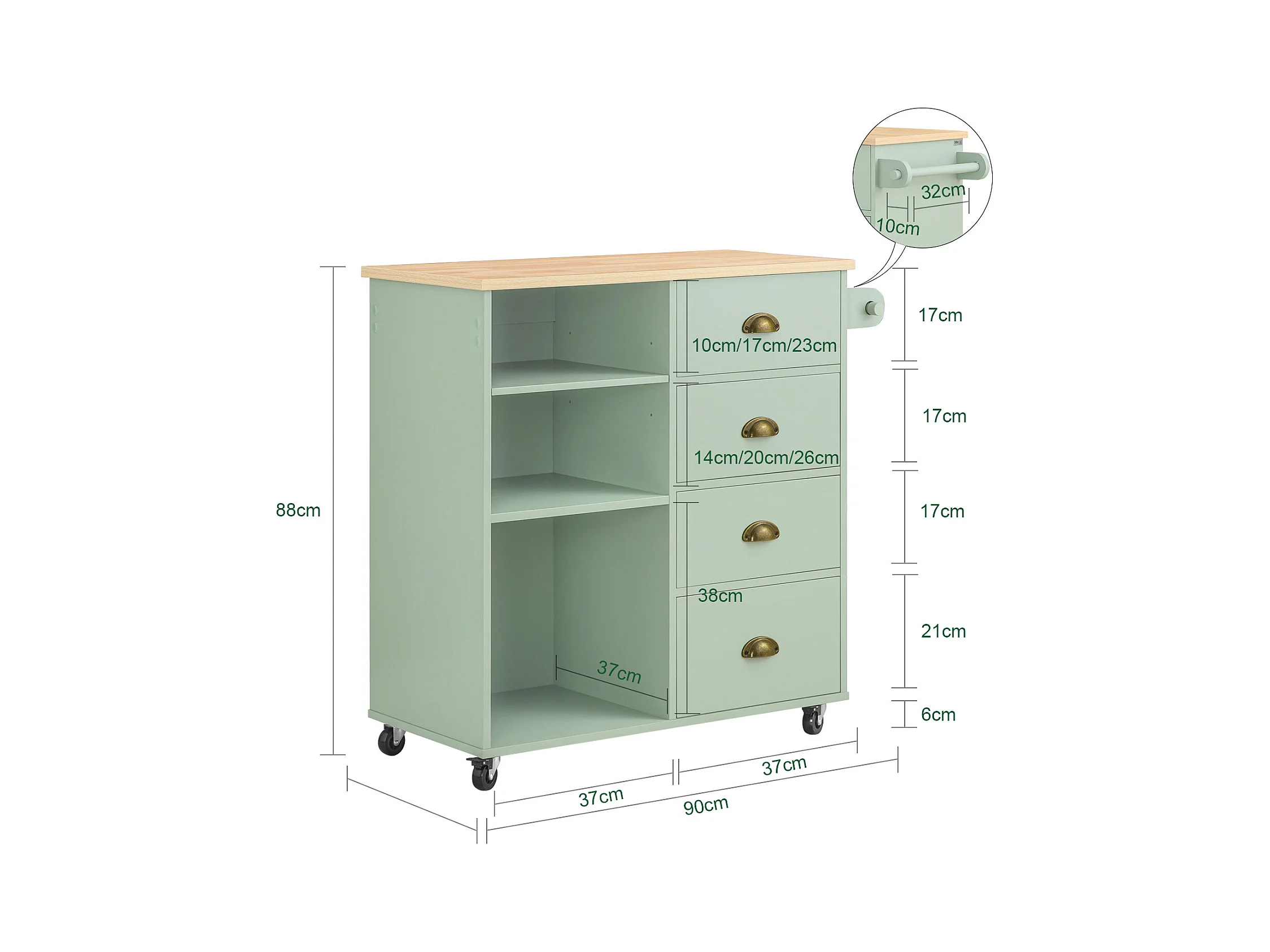 SoBuy FKW127-GR - Ilot de cuisine 3 compartiments 4 tiroirs Vert L90.0cm x L40.0cm x H88.0cm