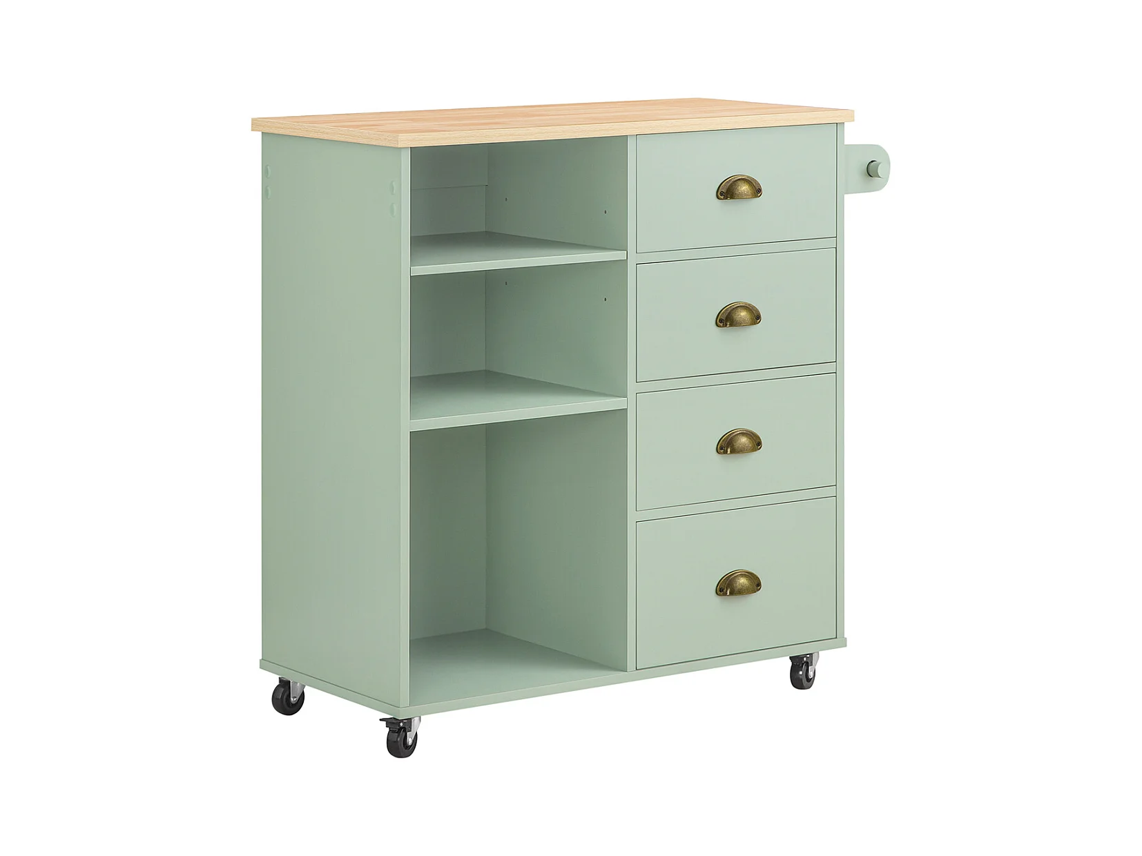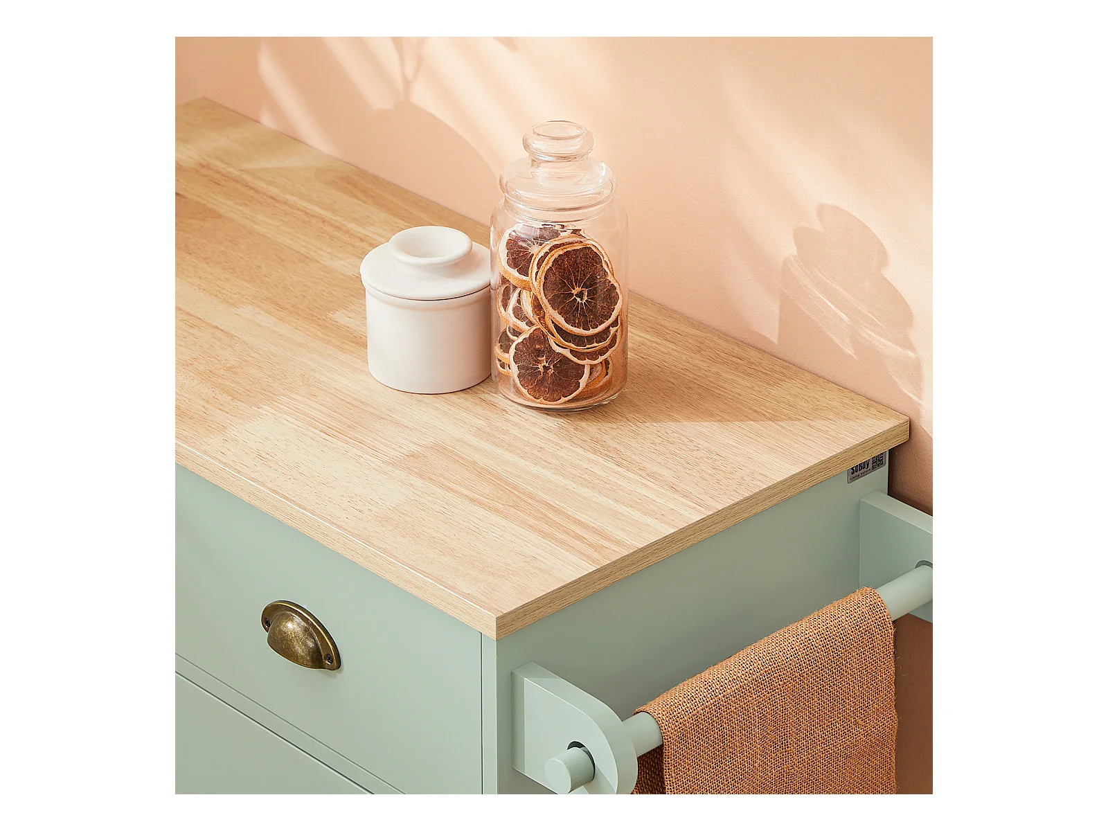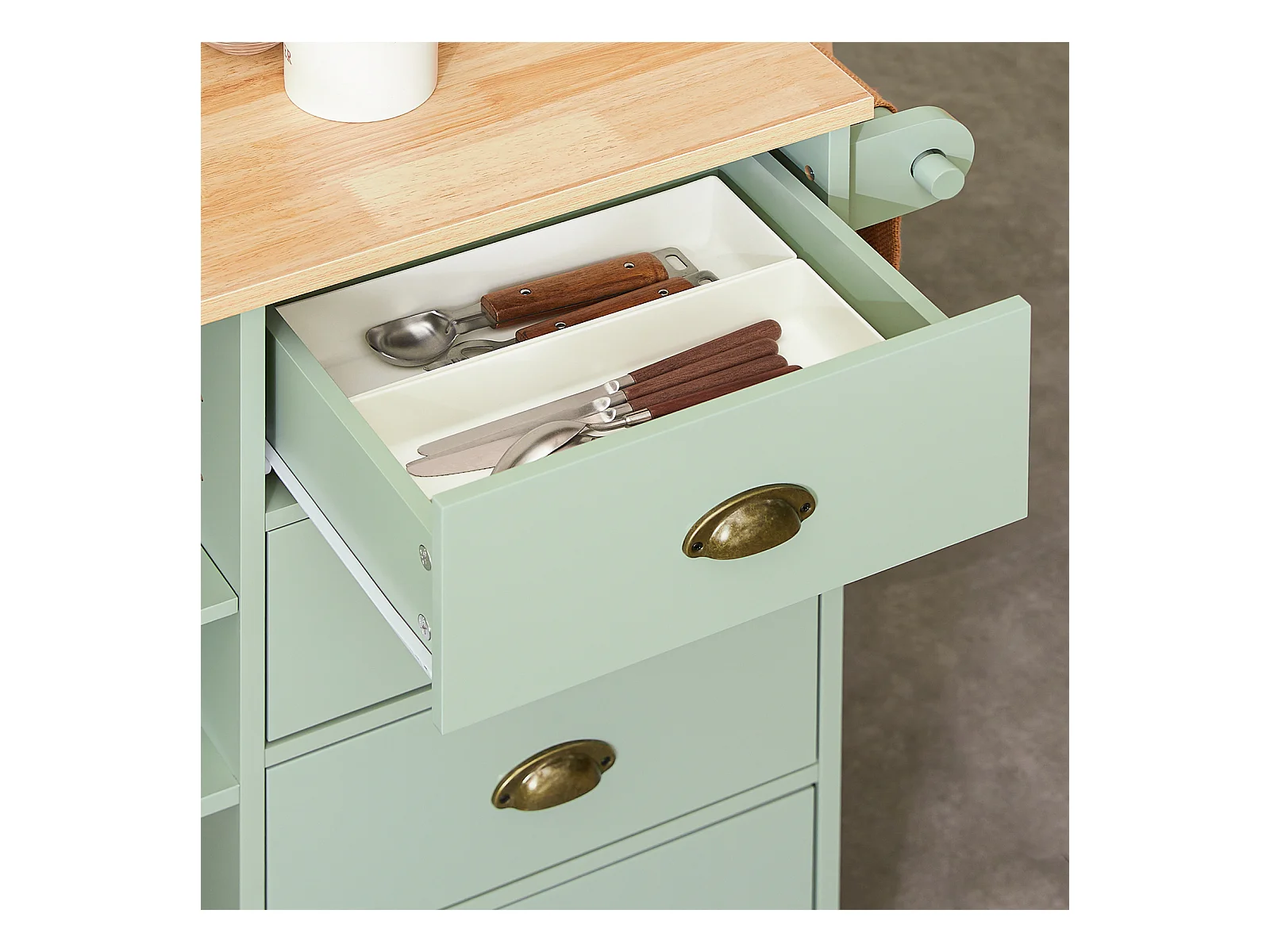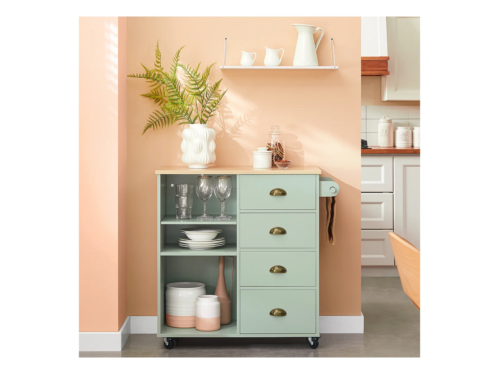 SoBuy FKW127-GR - Ilot de cuisine 3 compartiments 4 tiroirs Vert L90.0cm x L40.0cm x H88.0cm