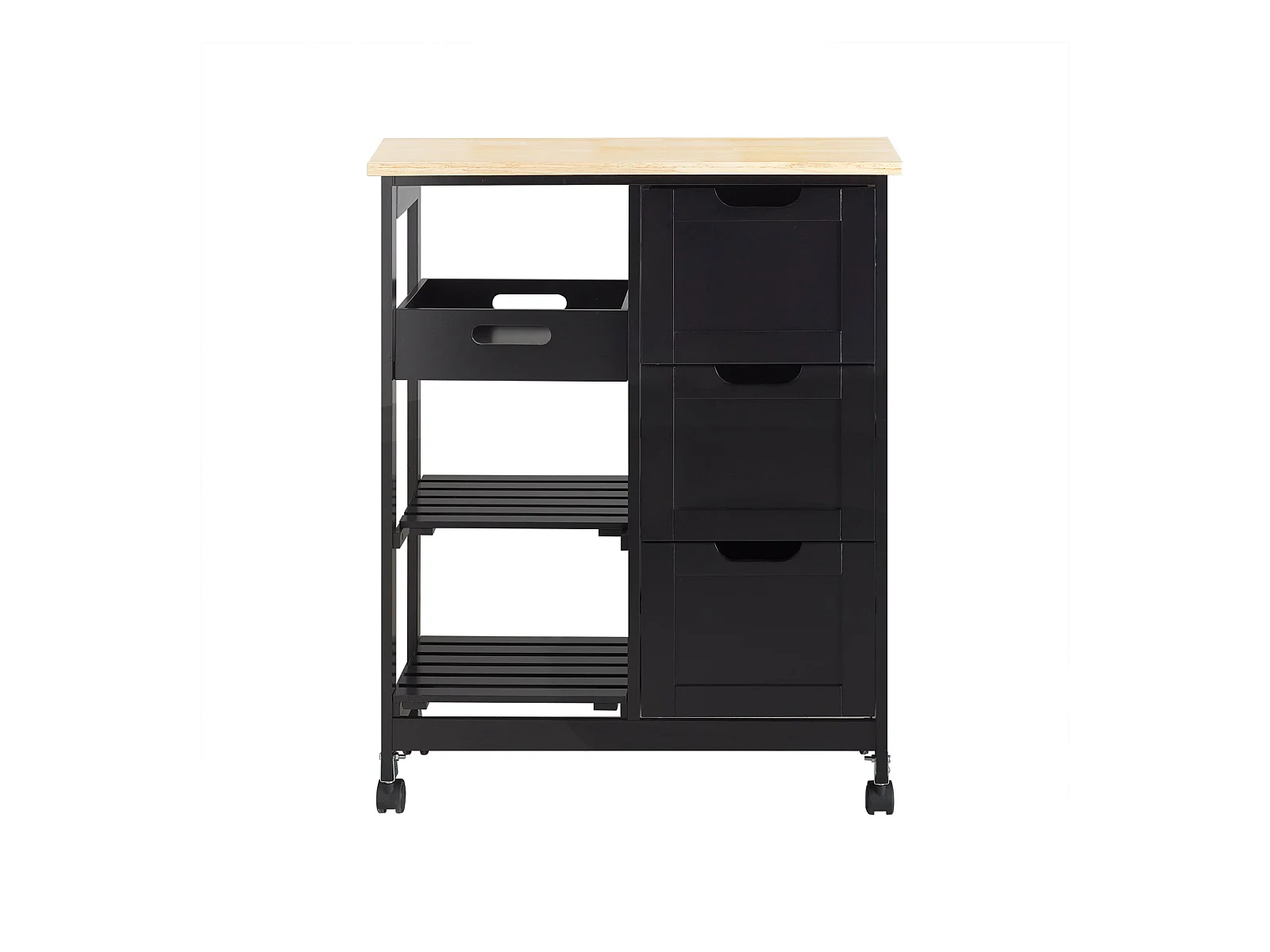 Desserte Chariot De Cuisine De Service Roulant, Meuble Armoire De Rangement Cusine Noir, Fkw45-sch