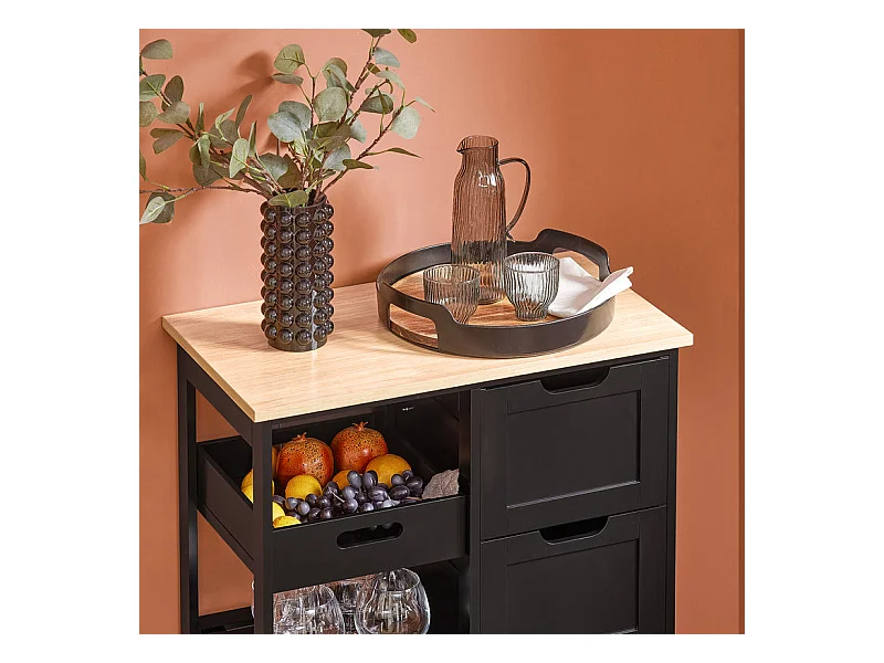Cuisine Buffet Desserte de Cuisine Table Roulante avec 2 tiroirs et 2 étagères, FKW74-SCH