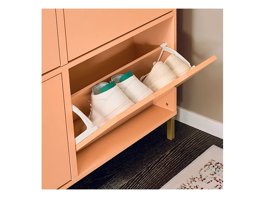 SoBuy FSR100-RS Meuble Chaussure, Rangement Chaussure, Meuble d'Entrée, Commode à 4 Abattants, Coffre Rangement, Pieds en Fer
