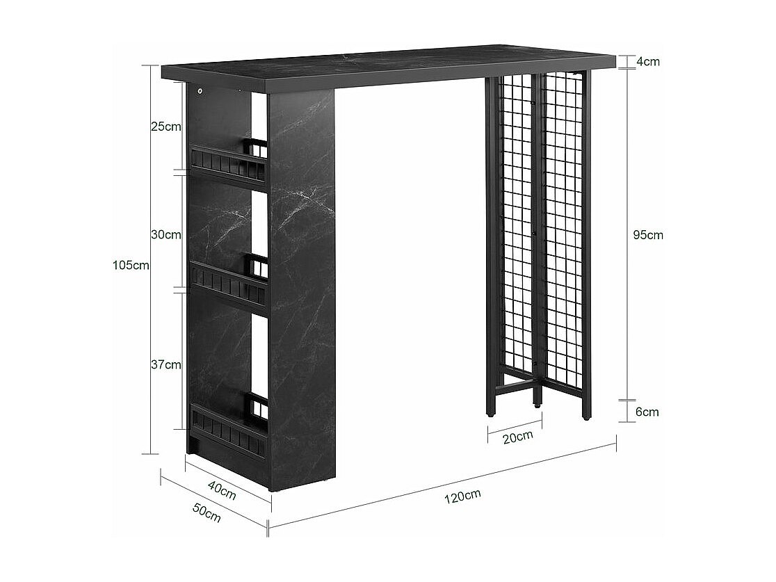 Table de Bar avec 3 Étagères avec Surfaces de Rangement SoBuy FWT100-SCH, Table pour Cuisine, Salle à Manger et Salon, Effet Marbre Cadre en Métal