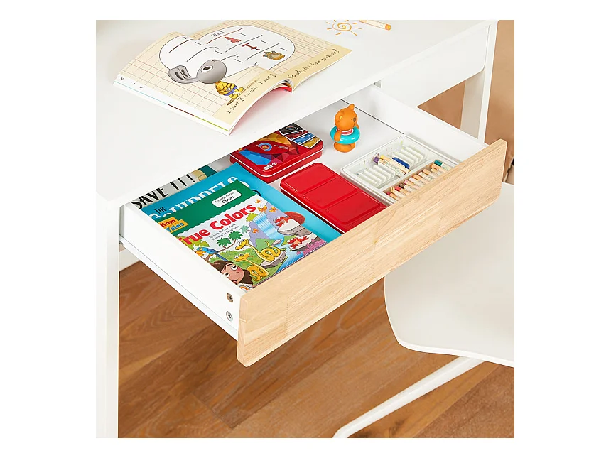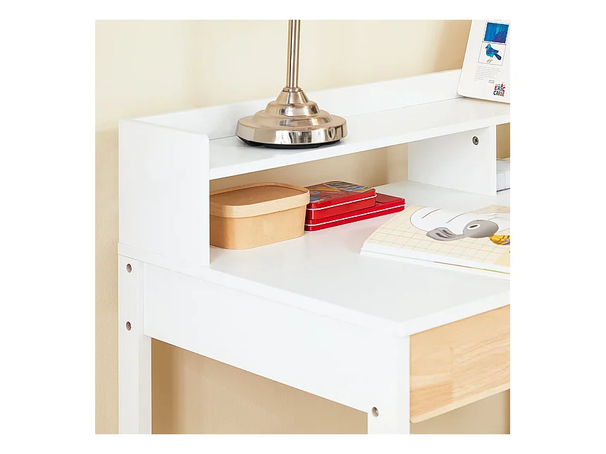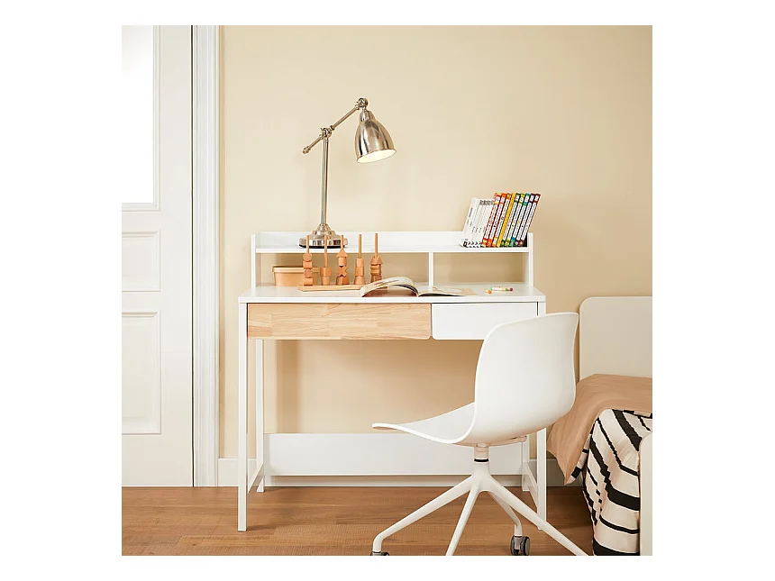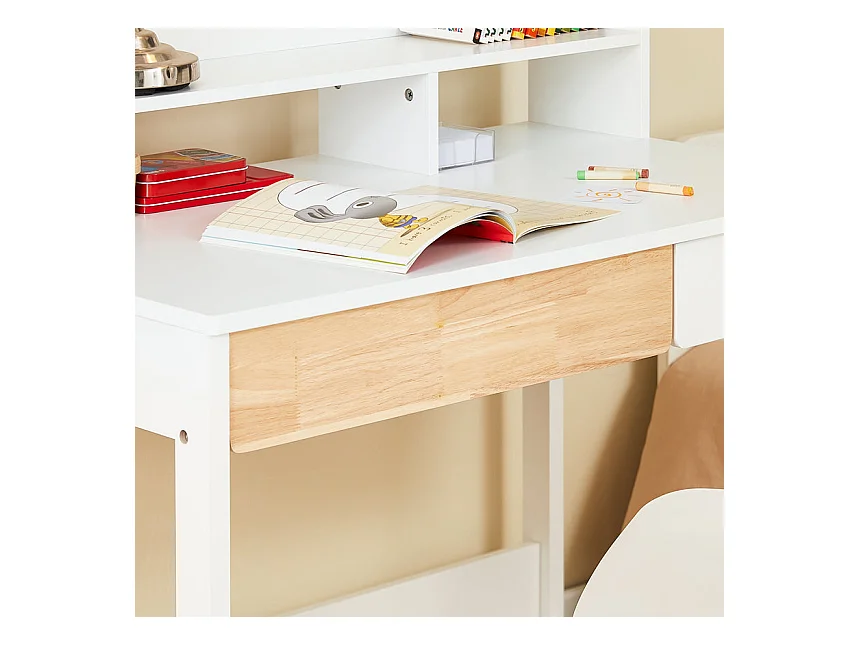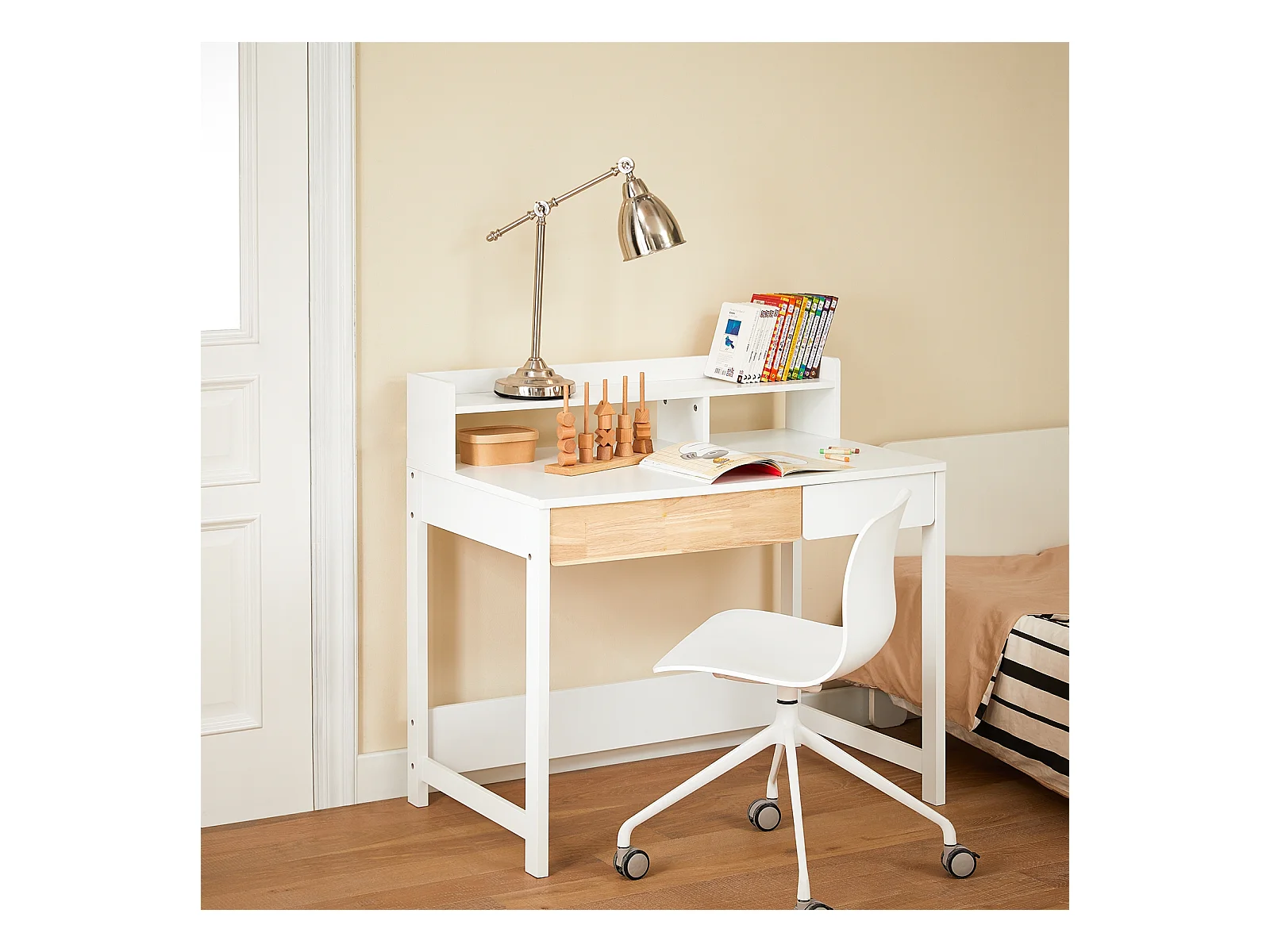 SoBuy Bureau Informatique, Bureau d'Ordinateur, Table d’Étude à Domicile avec 1 Étagère et 2 Tiroirs pour Bureau, Salon, Chambre FWT106-W