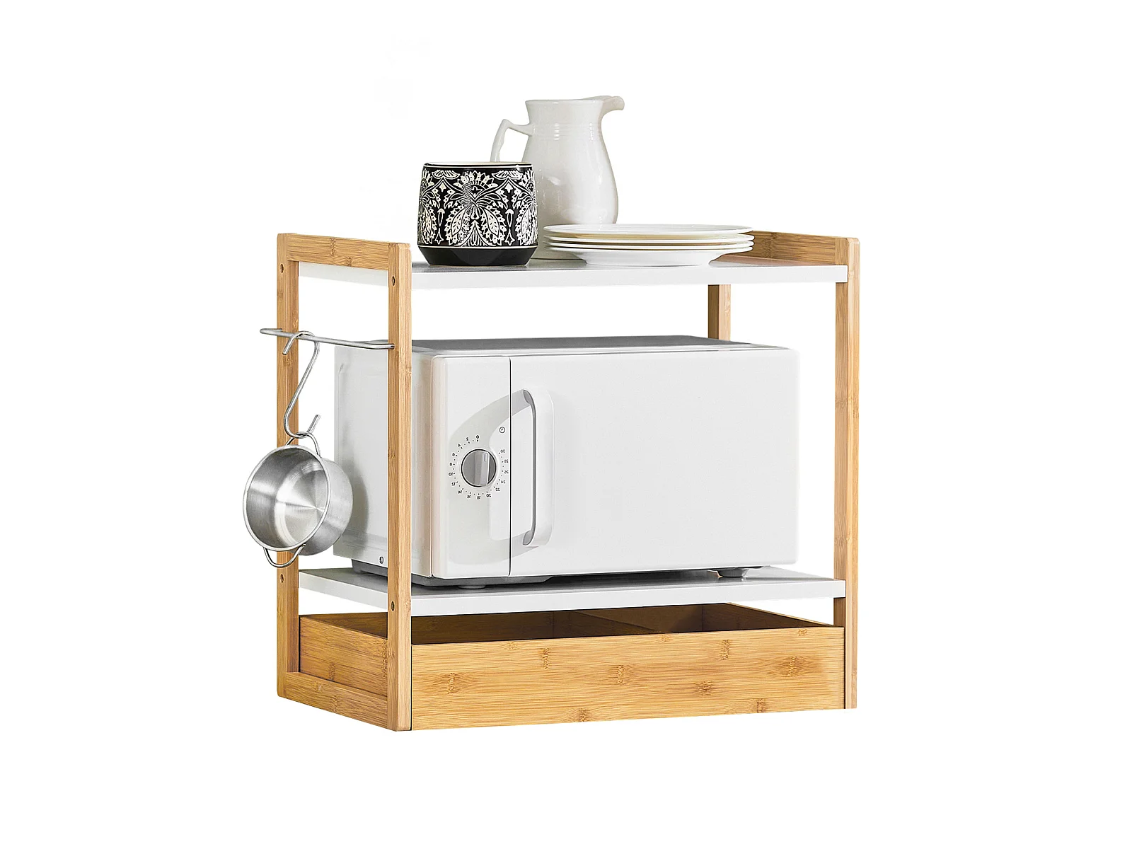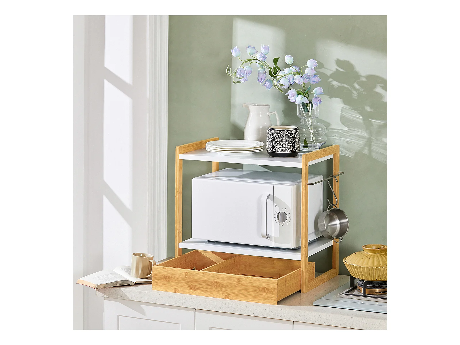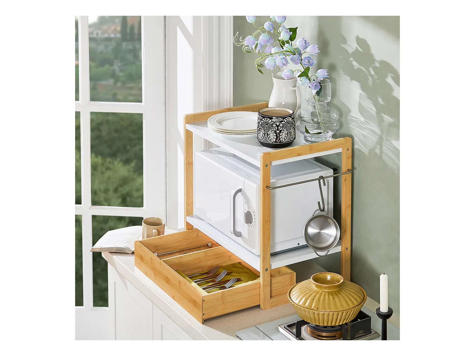 SoBuy KCR07-WN Étagère Micro Ondes, Support de Four Micro-Onde Amovible Rangement de Cuisine avec 2 étagères, 1 Tiroir et 1 Porte-torchon