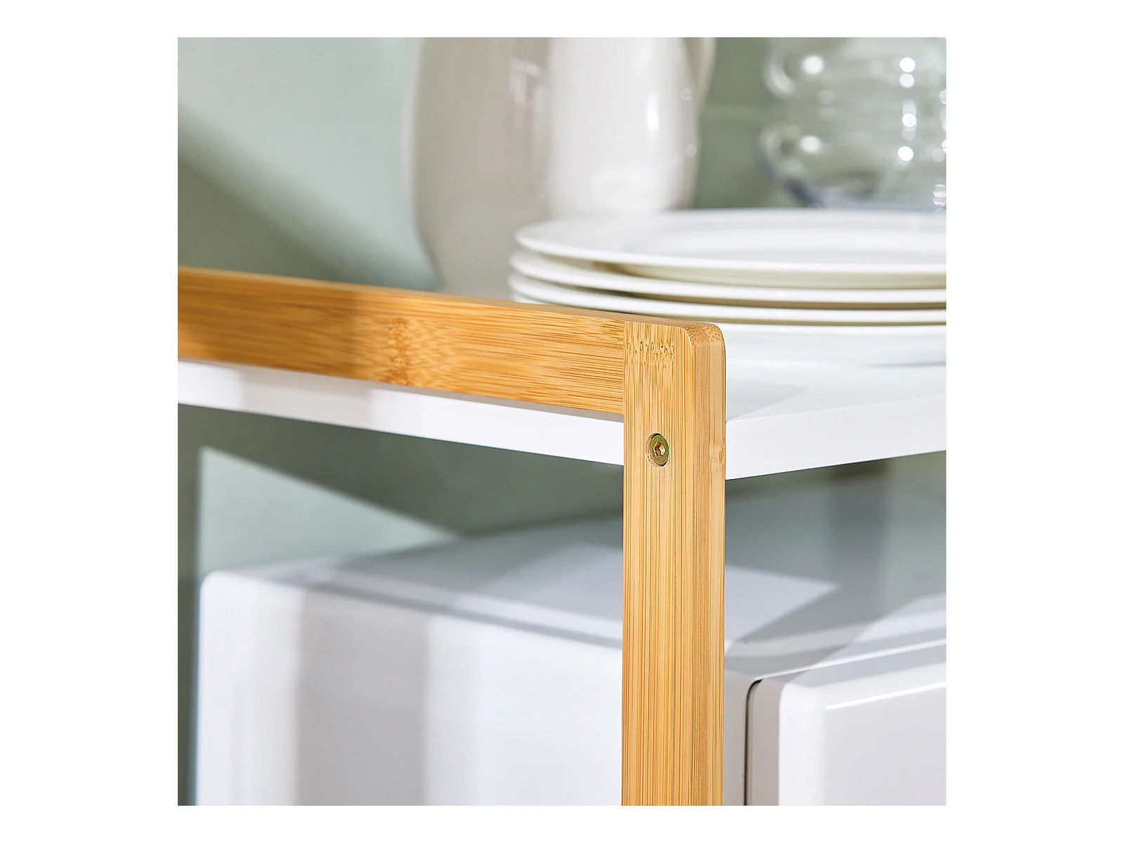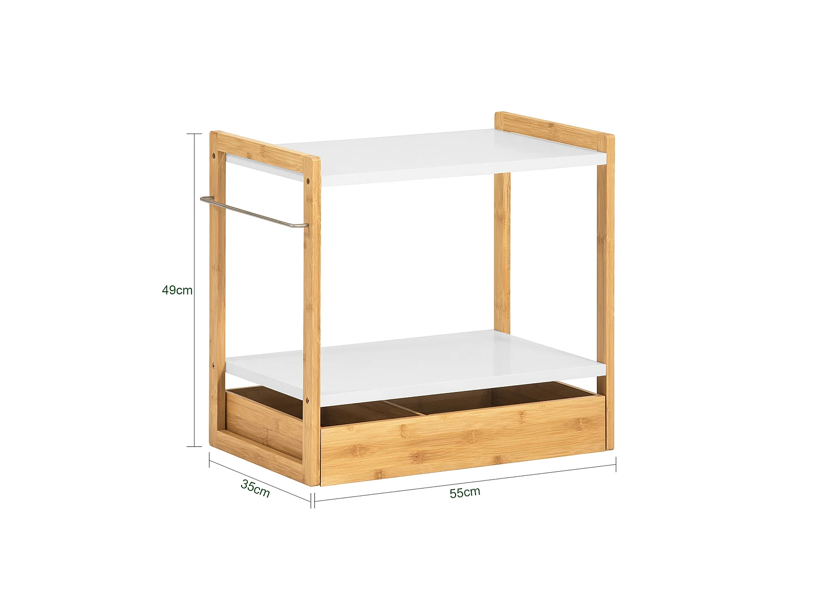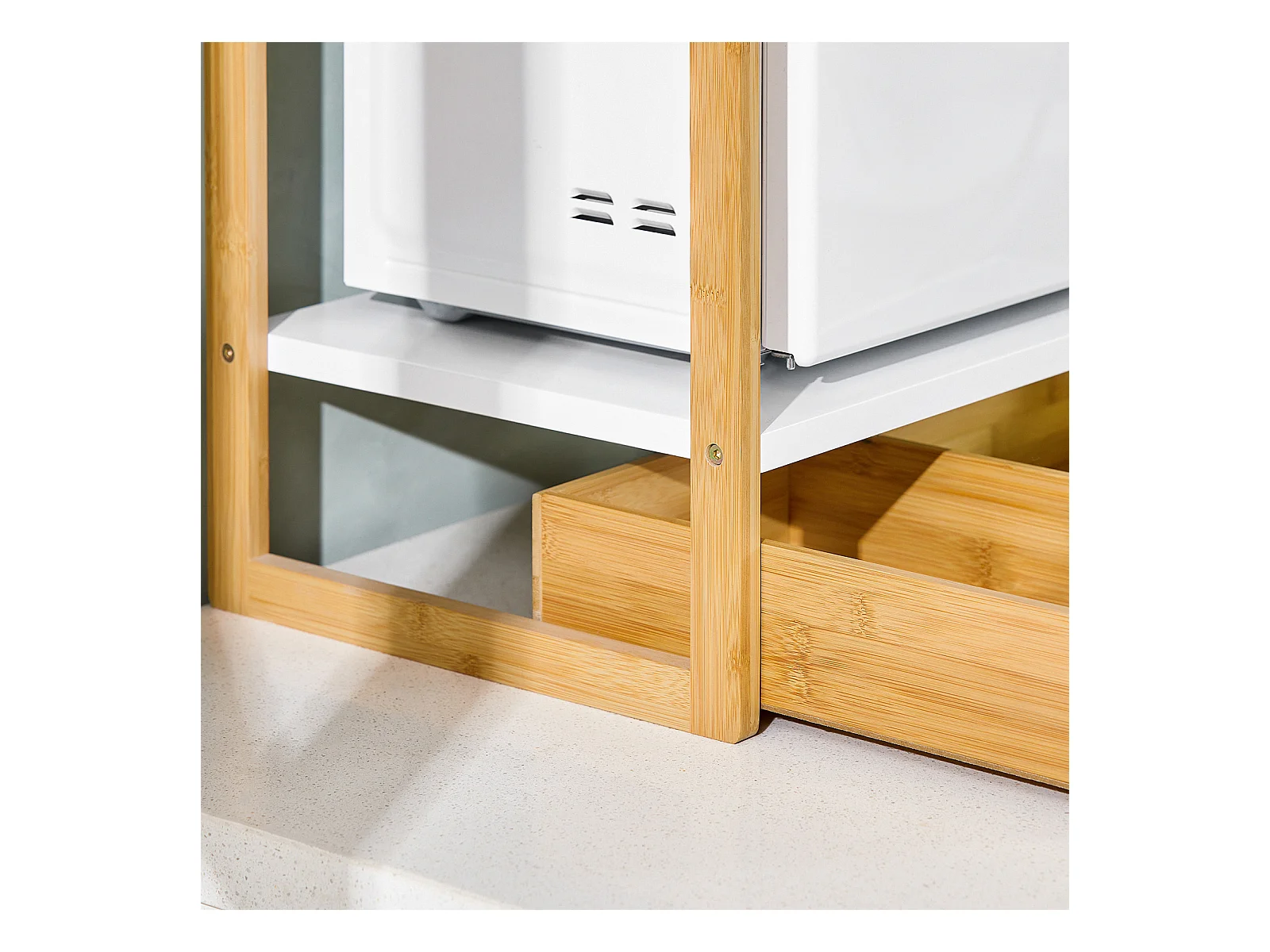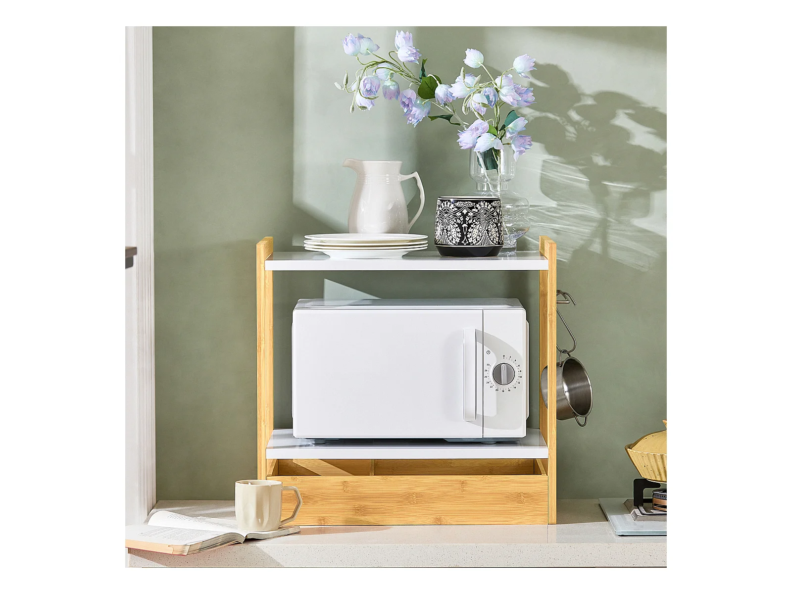 SoBuy KCR07-WN Étagère Micro Ondes, Support de Four Micro-Onde Amovible Rangement de Cuisine avec 2 étagères, 1 Tiroir et 1 Porte-torchon