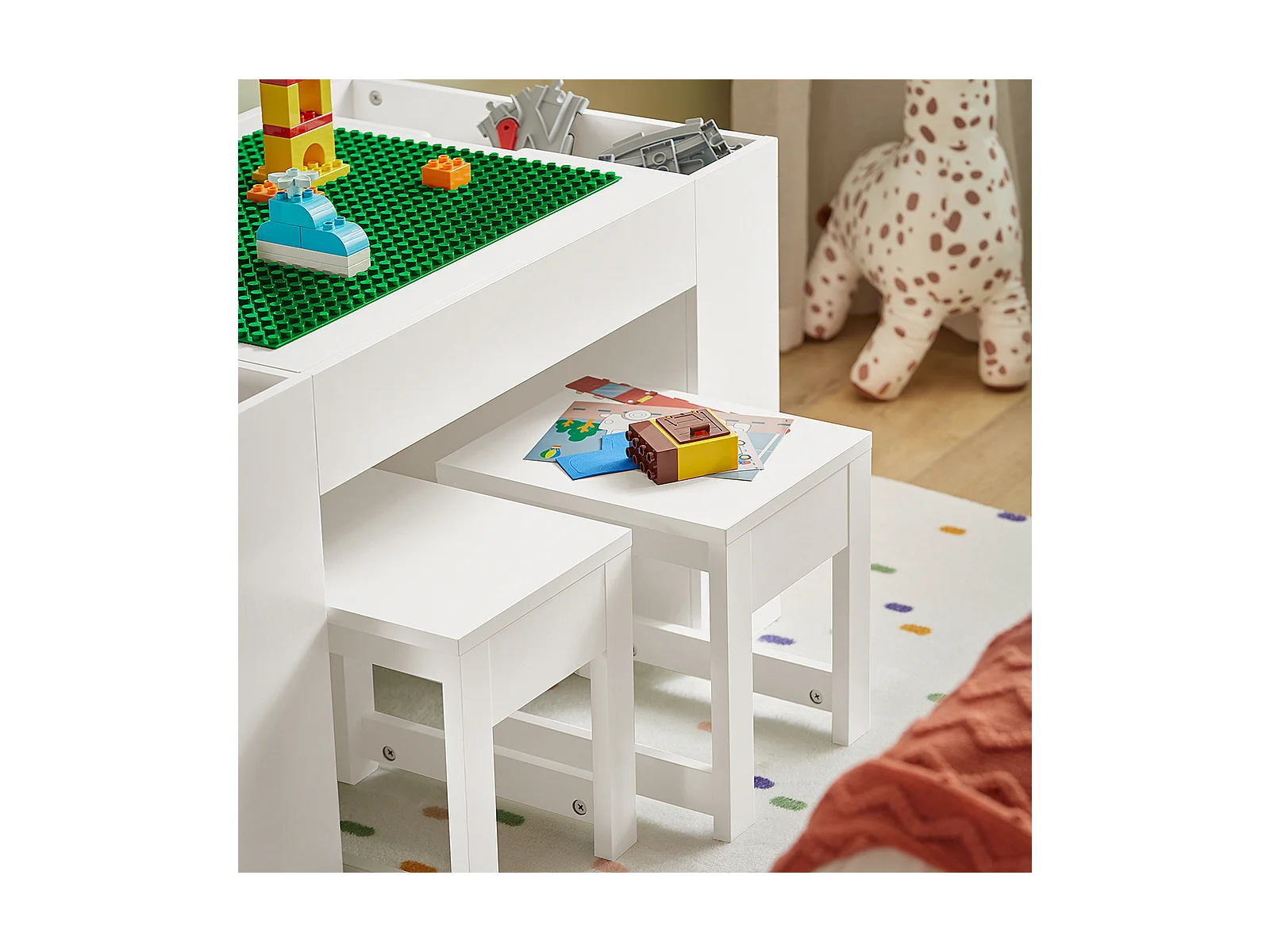 SoBuy KMB75-W Table Enfants avec 2 Tabourets, Ensemble de Table de Construction Enfant avec 2 Tabourets, Bureau Enfant avec 8 Bac de Rangement