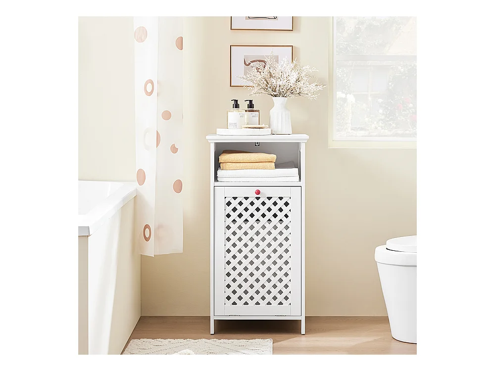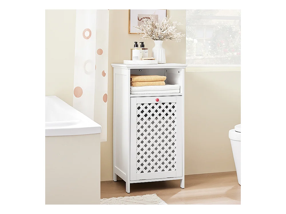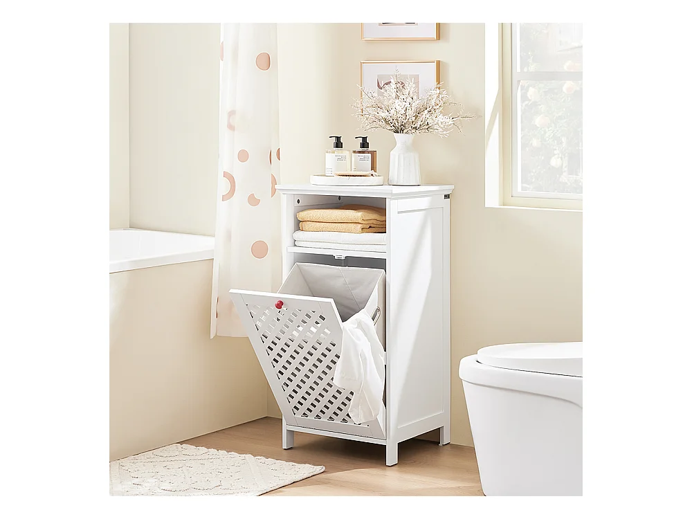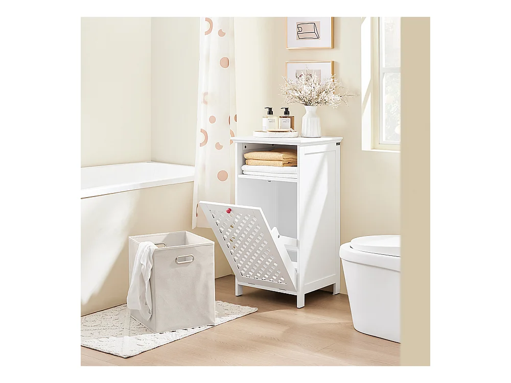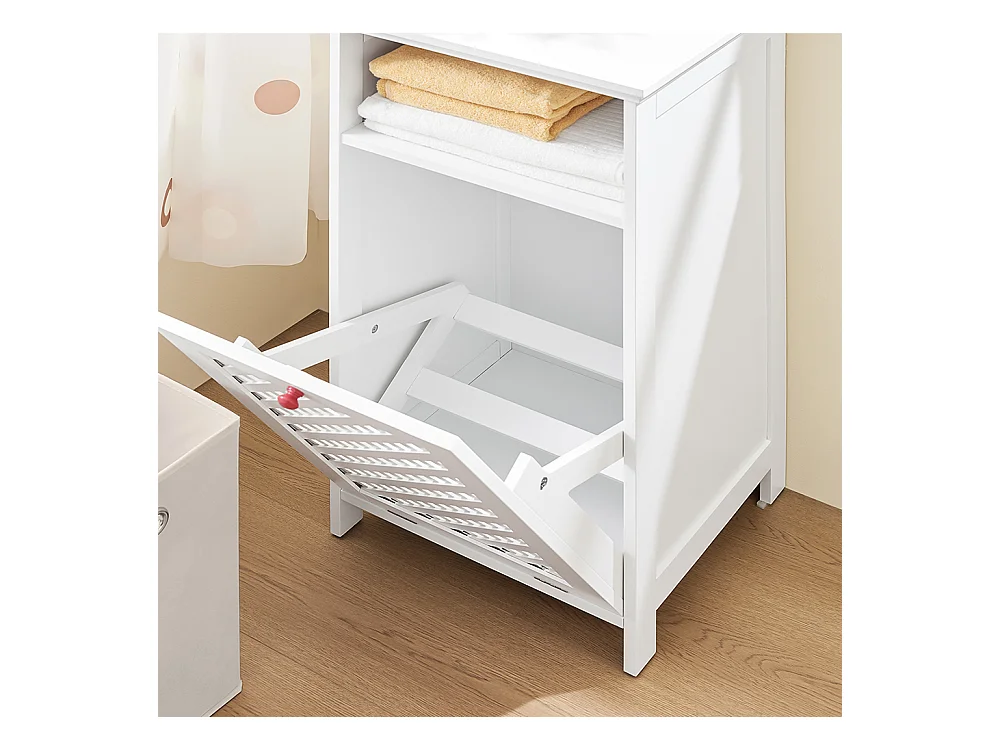 SoBuy BZR100-W Armoire à Linge, Corbeille à Linge, Meuble Bas de Salle de Bain, Meuble de Rangement avec 1 Panier à Linge Amovible, Blanc