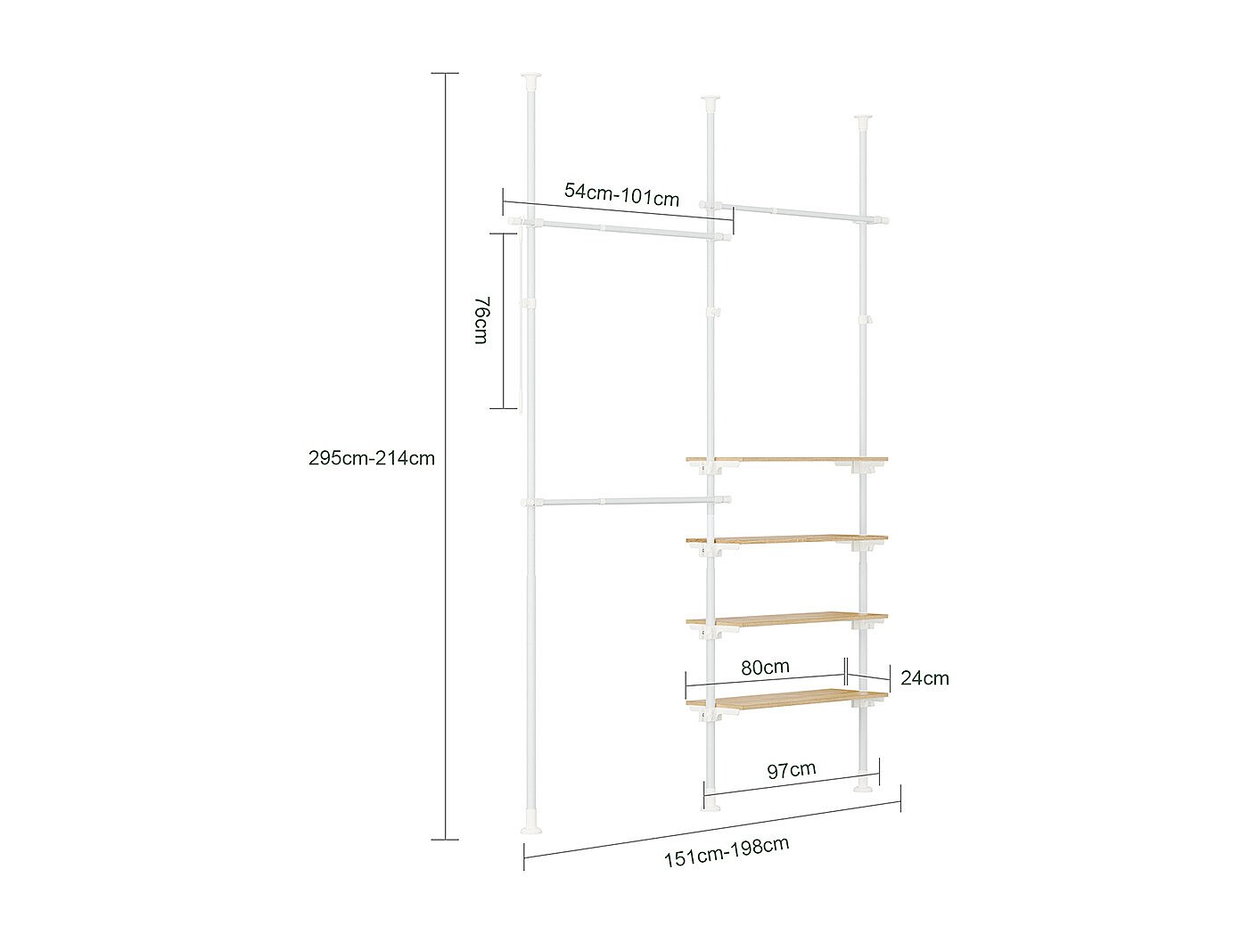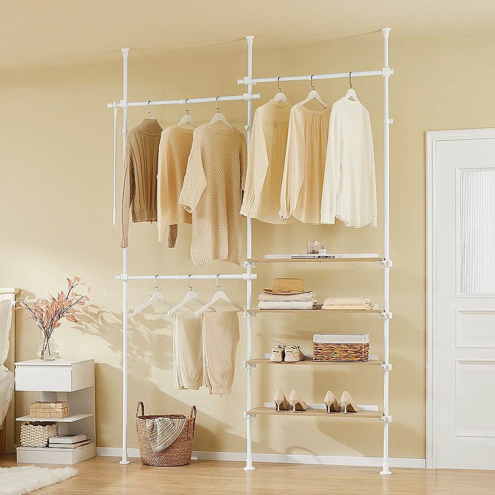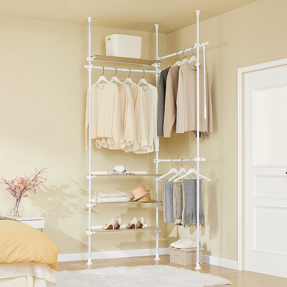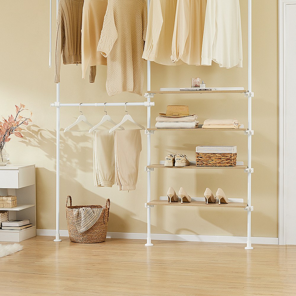 SoBuy Penderie télescopique à étagères et tringles réglables, Blanc