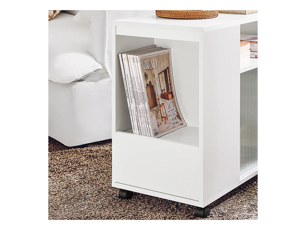 Bout De Canapé Table Café Roulante Avec 2 Étagères De Rangement Bibliothèque À Roulettes, Fbt34-w