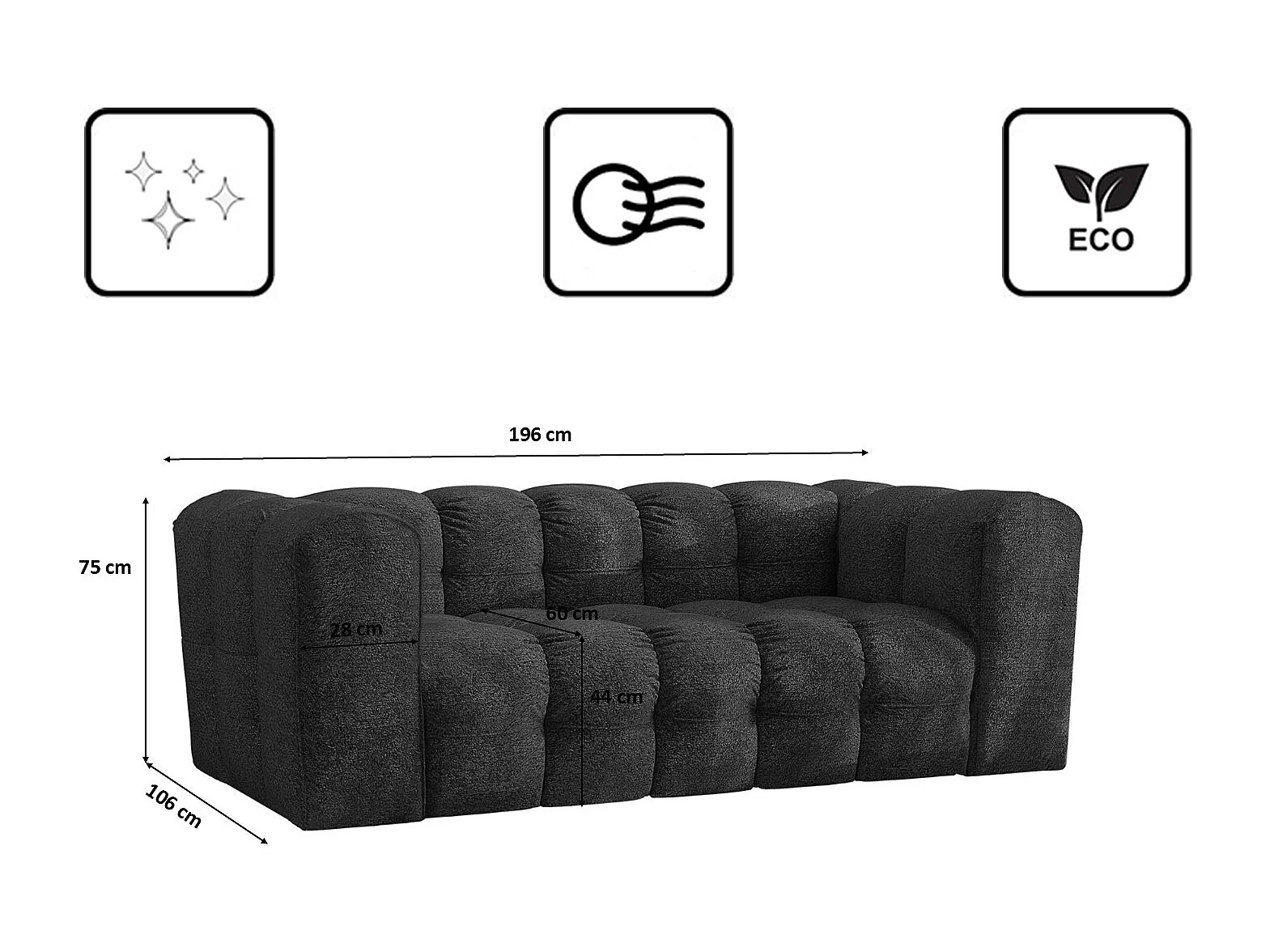 Sofa 2-Sitzer, Komfort Couch BALOO, stoff Schenille & Bouclé, Graphit
