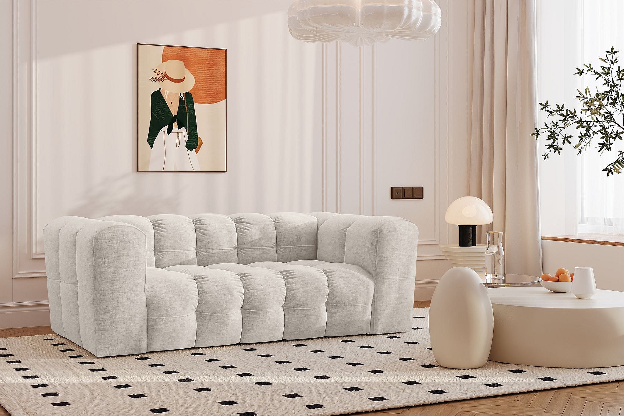 Sofa 2-Sitzer, Komfort Couch BALOO, stoff Schenille, Ecru