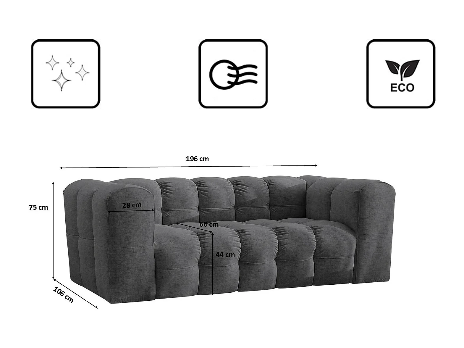Sofa 2-Sitzer, Komfort Couch BALOO, stoff Schenille, Graphit