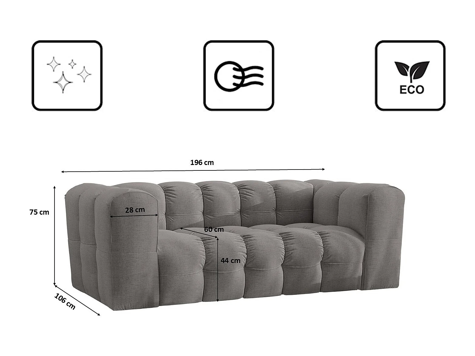 Sofa 2-Sitzer, Komfort Couch BALOO, stoff Schenille, Grau
