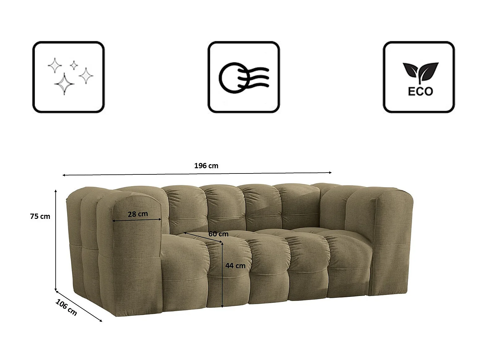 Sofa 2-Sitzer, Komfort Couch BALOO, stoff Schenille, Olive