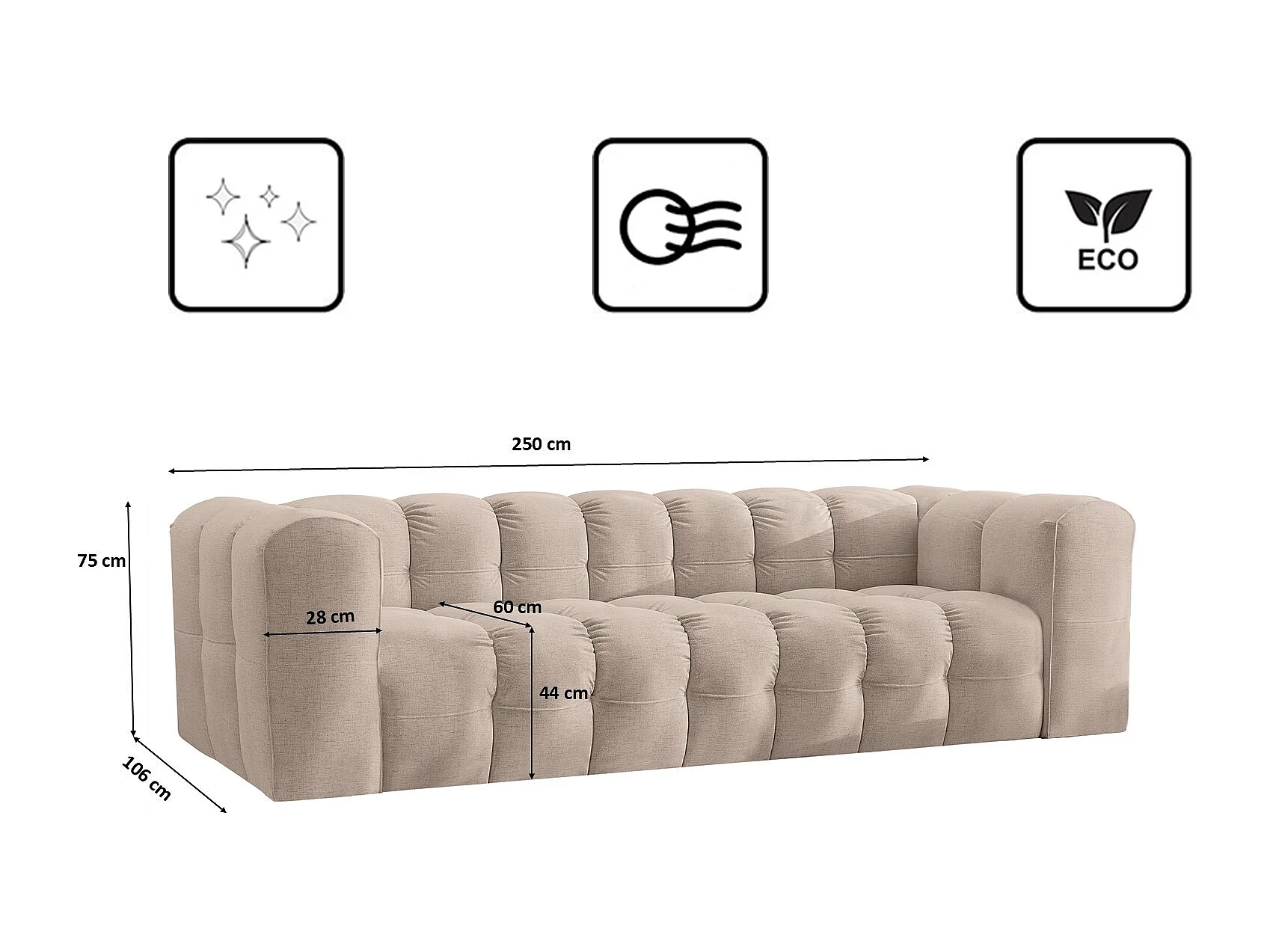 Sofa 4-Sitzer, Komfort Couch BALOO, stoff Schenille, Beige