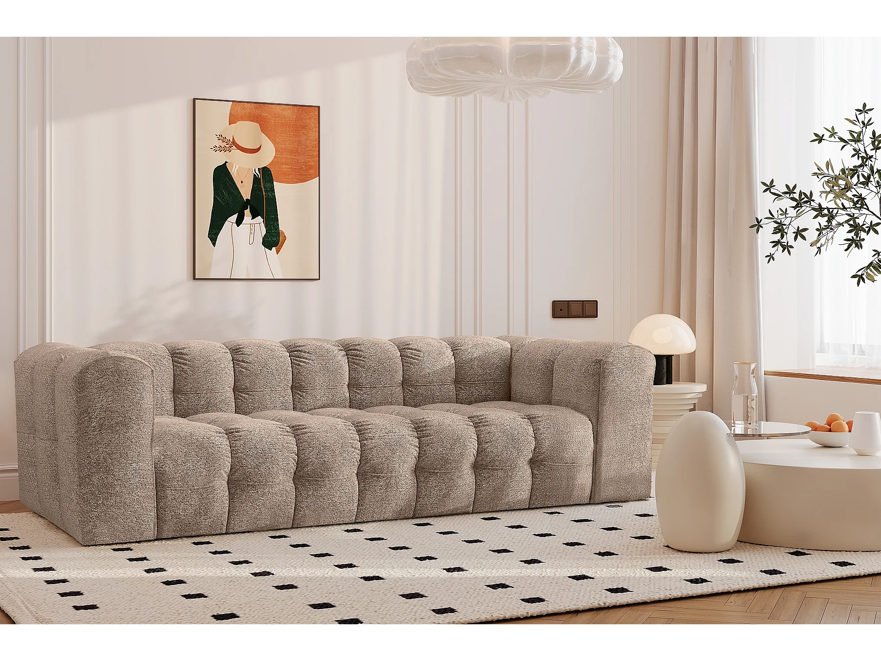 Sofa 3-Sitzer, Komfort Couch BALOO, stoff Schenille & Bouclé, Dunkelbeige