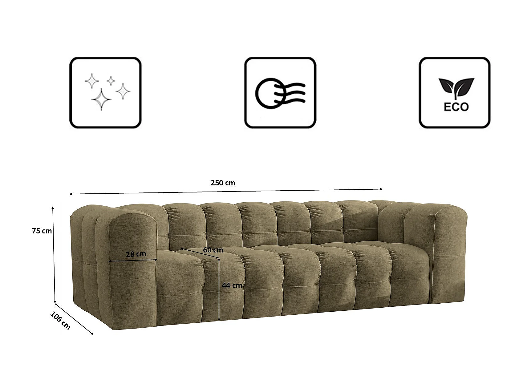Sofa 4-Sitzer, Komfort Couch BALOO, stoff Schenille, Olive