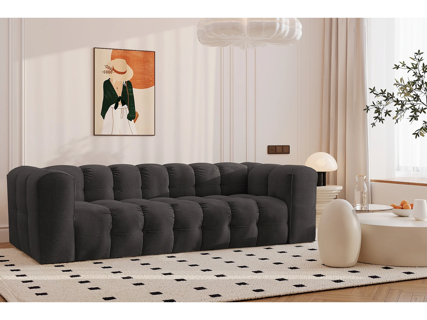 CXL by Christian Lacroix - Canapé "Tendance" 4 places en tissu structurel noir - 262x122x72cm