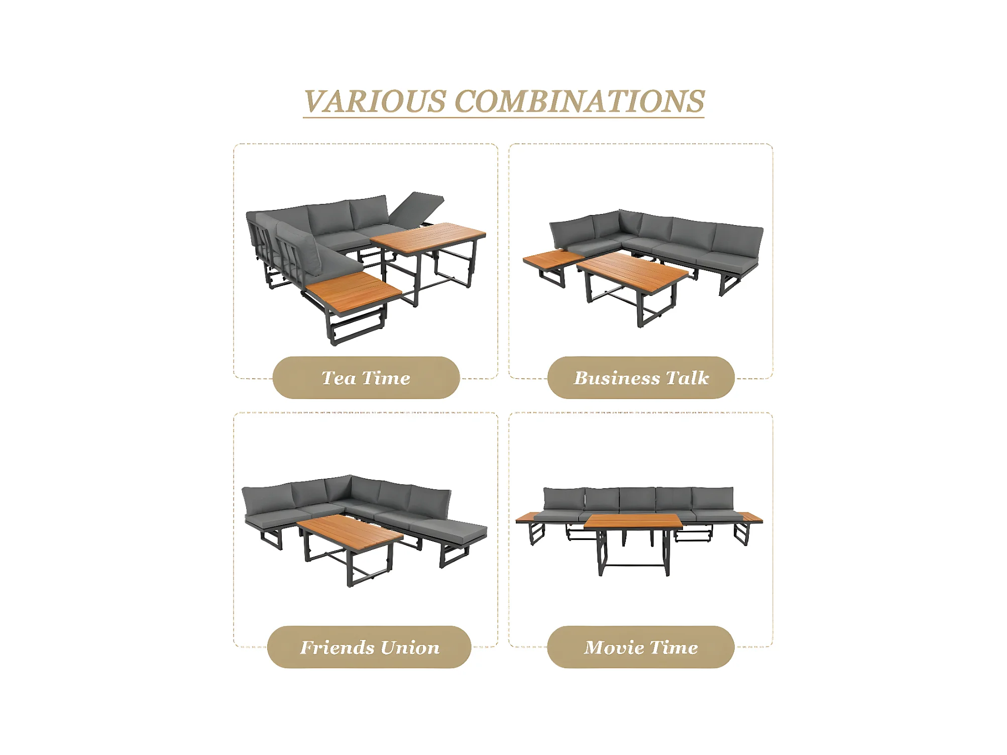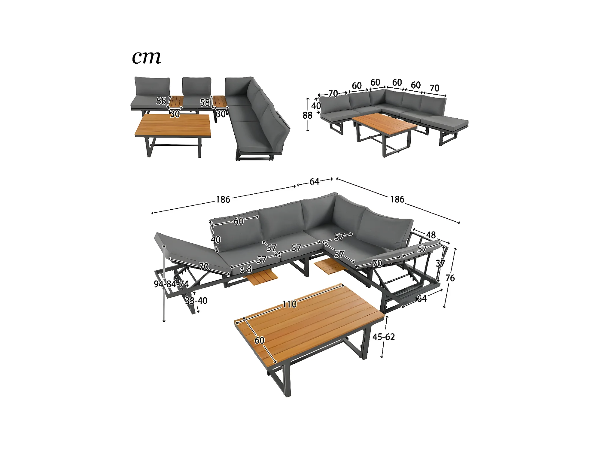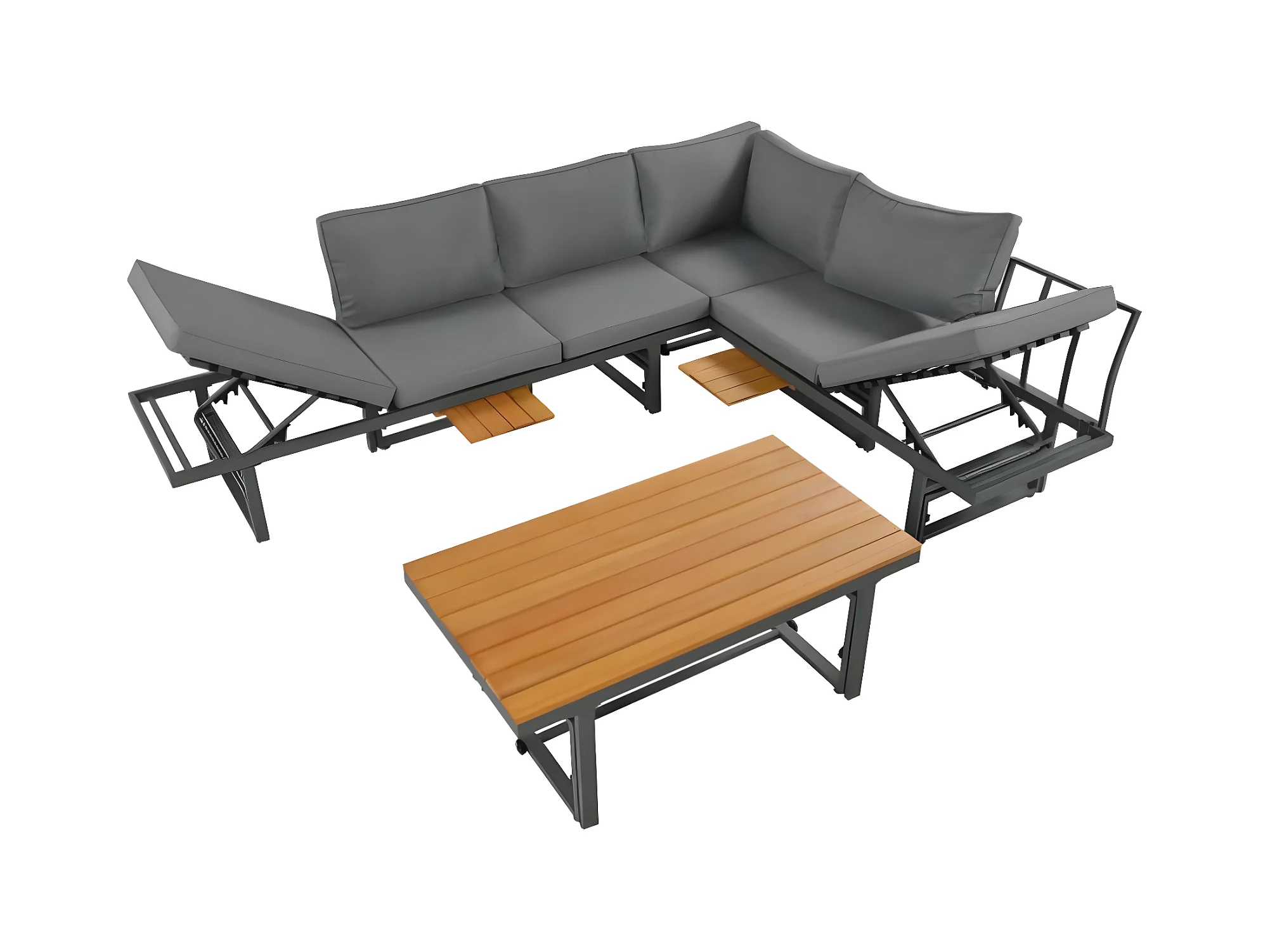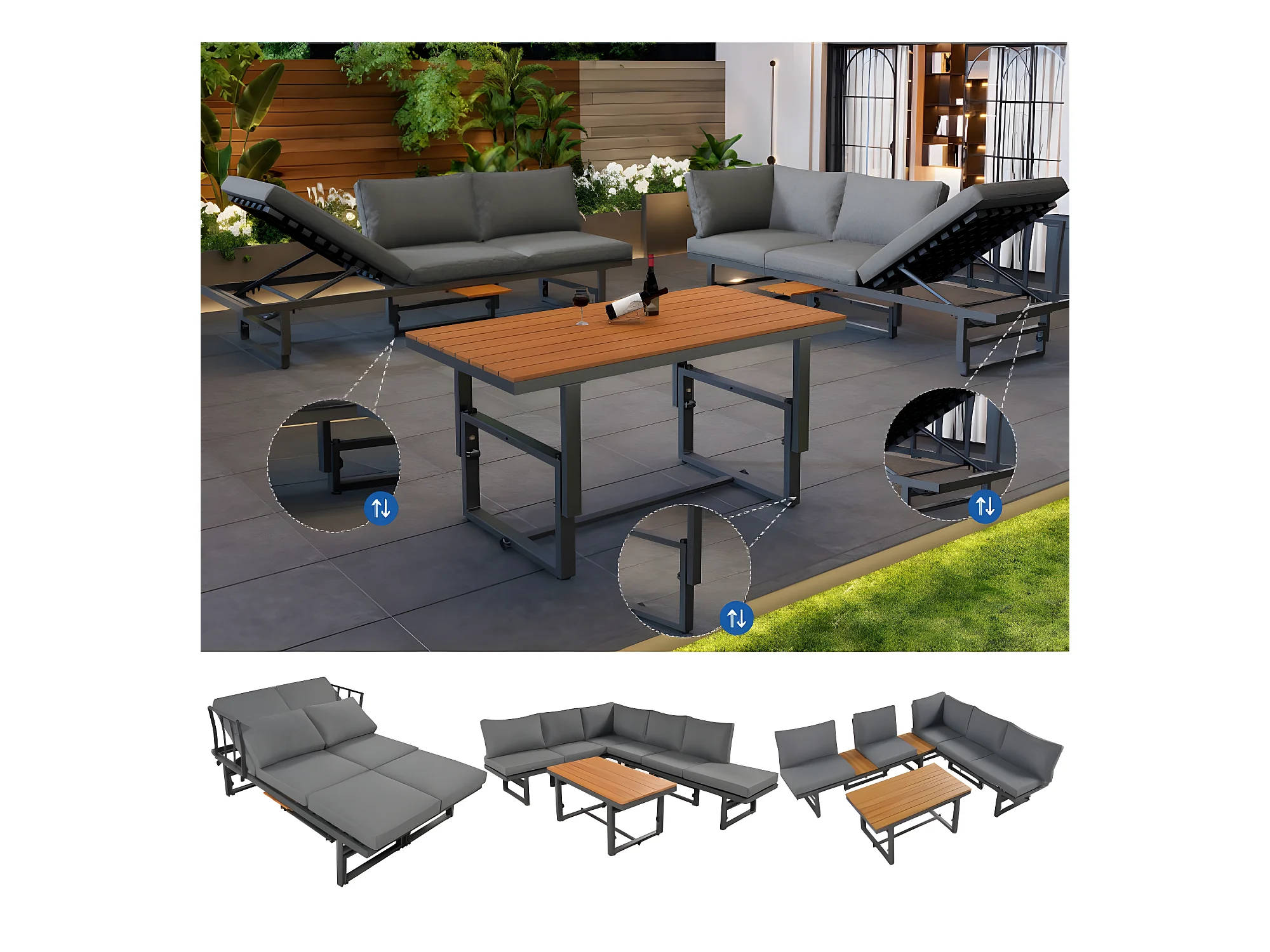 Sofa de jardin en ensemble, gris, ensemble de 3 pièces comprenant 2 canapés