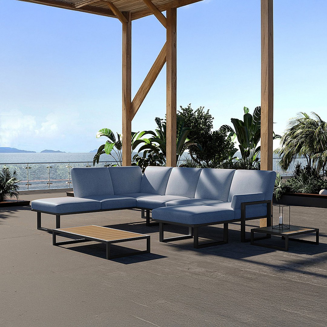 Canapé 4 places Soledo Bleu clair - Cadre anthracite