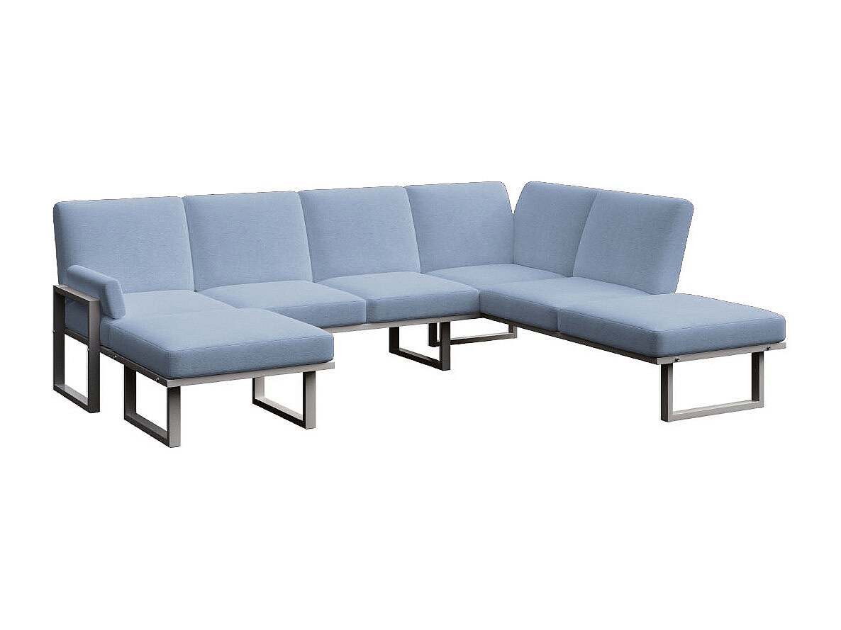 Soledo Canapé panoramique Bleu clair - Cadre Anthracite