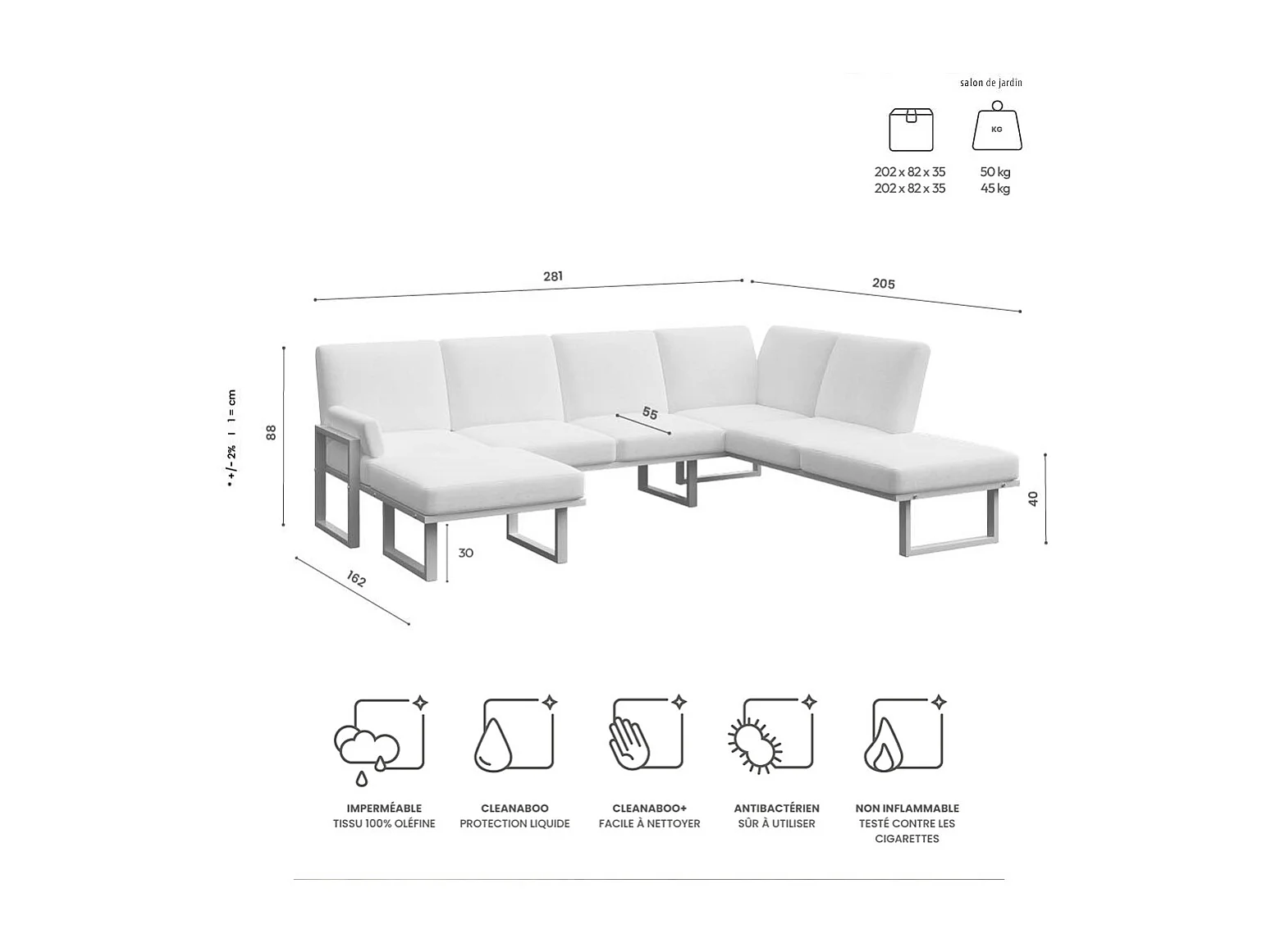 Soledo Canapé panoramique Cappucino - Cadre Anthracite