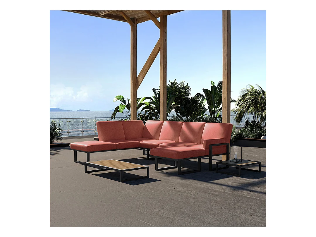 Soledo Canapé panoramique Corail - Cadre Anthracite