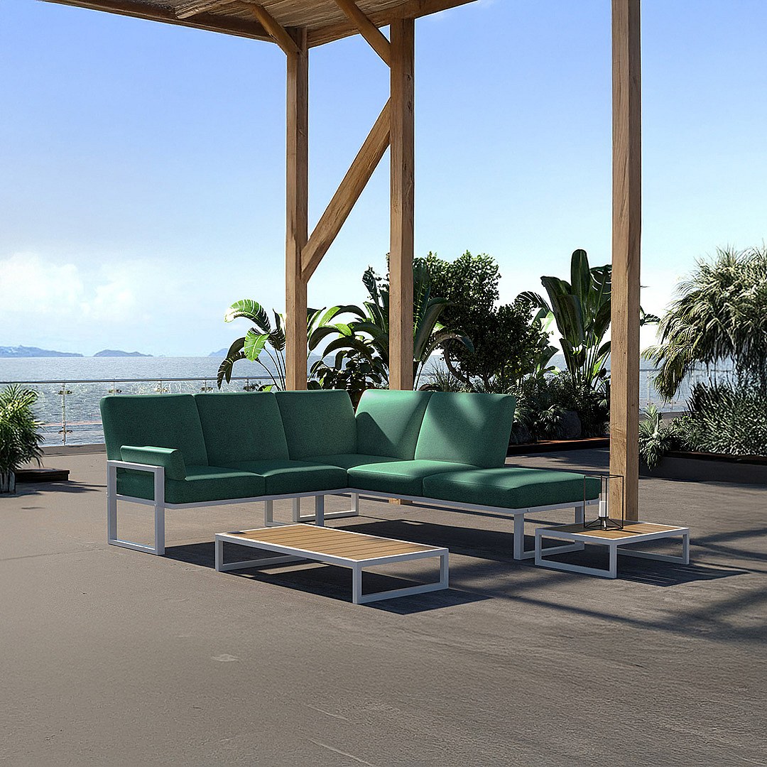 Soledo Canapé d'angle Vert profond - Cadre blanc