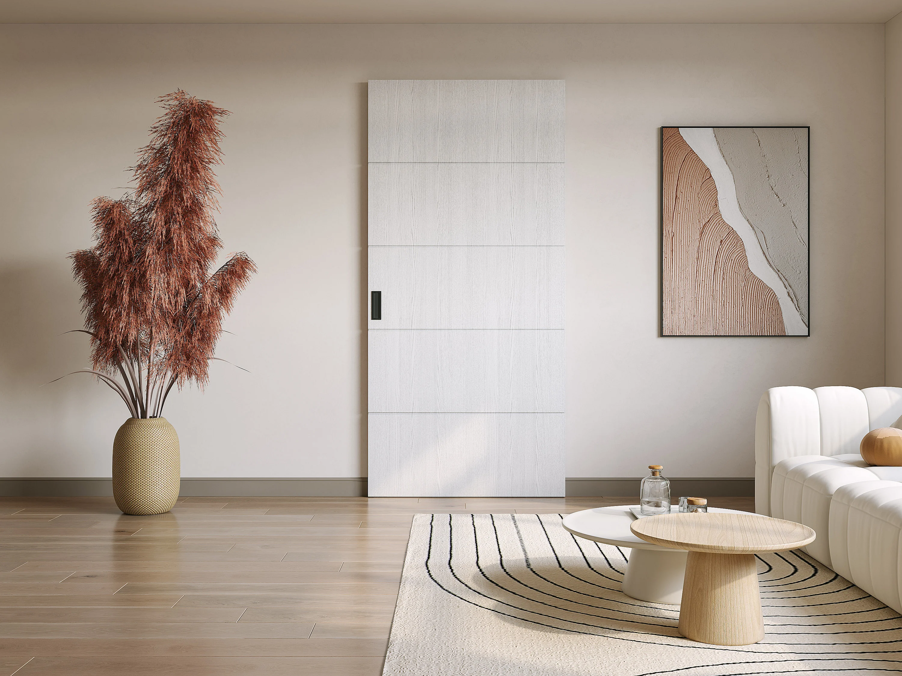 Porte coulissante en bois et MDF avec rail invisible - Blanc - 93 x 210 cm - SOMIRI