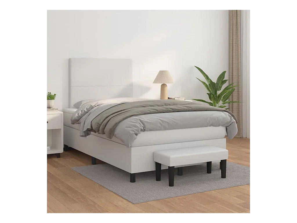 Sommier à lattes de lit avec matelas blanc 120x190cm similicuir