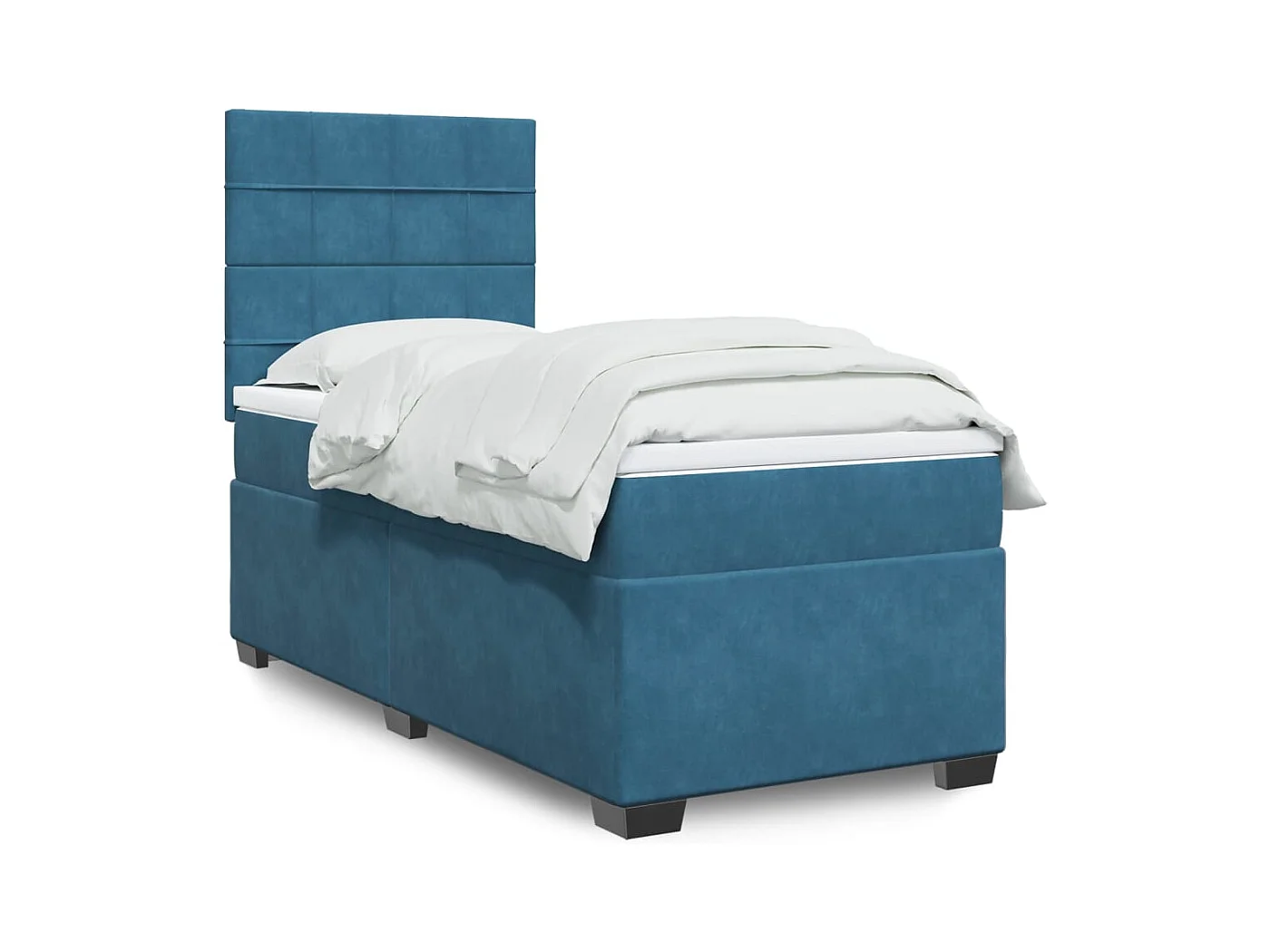 Cadre de lit avec matelas Bleu foncé 100 x 200 cm Velours
