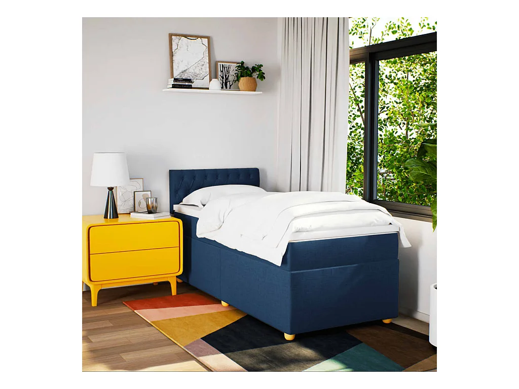 Cadre de lit avec matelas Bleu foncé 100 x 200 cm Velours