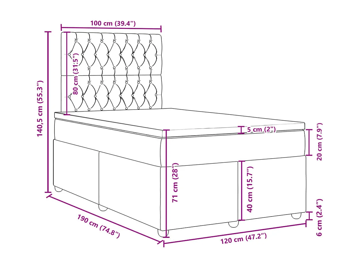 Sommier à lattes de lit et matelas bleu 120x190 cm velours