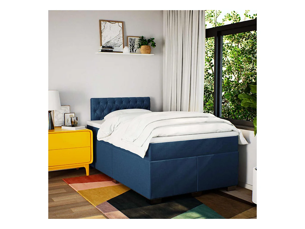 Sommier à lattes de lit avec matelas bleu 120x190 cm tissu