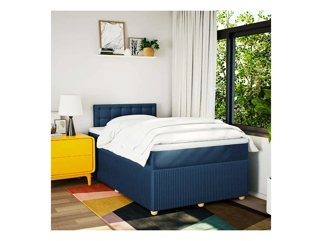 Sommier à lattes de lit avec matelas bleu 120x190 cm tissu