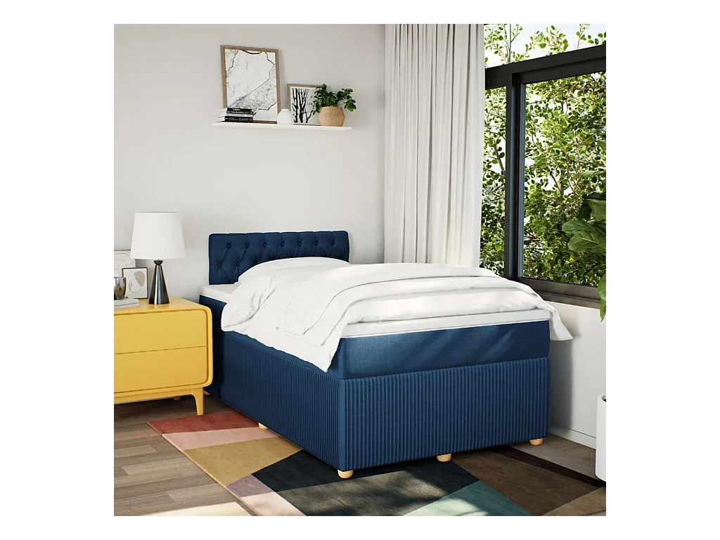 Sommier à lattes de lit et matelas bleu 120x200 cm velours