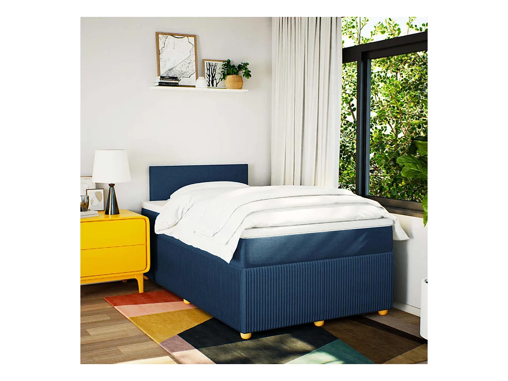 Sommier à lattes de lit et matelas bleu 120x200 cm velours