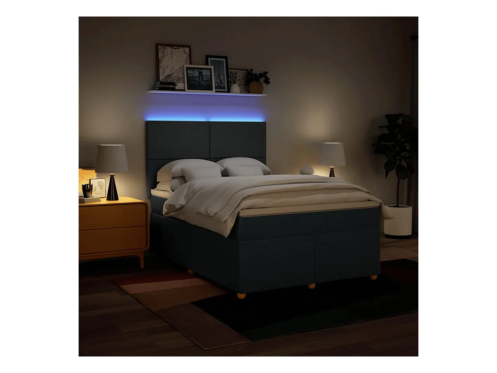 Sommier à lattes de lit et matelas bleu 140x200 cm velours