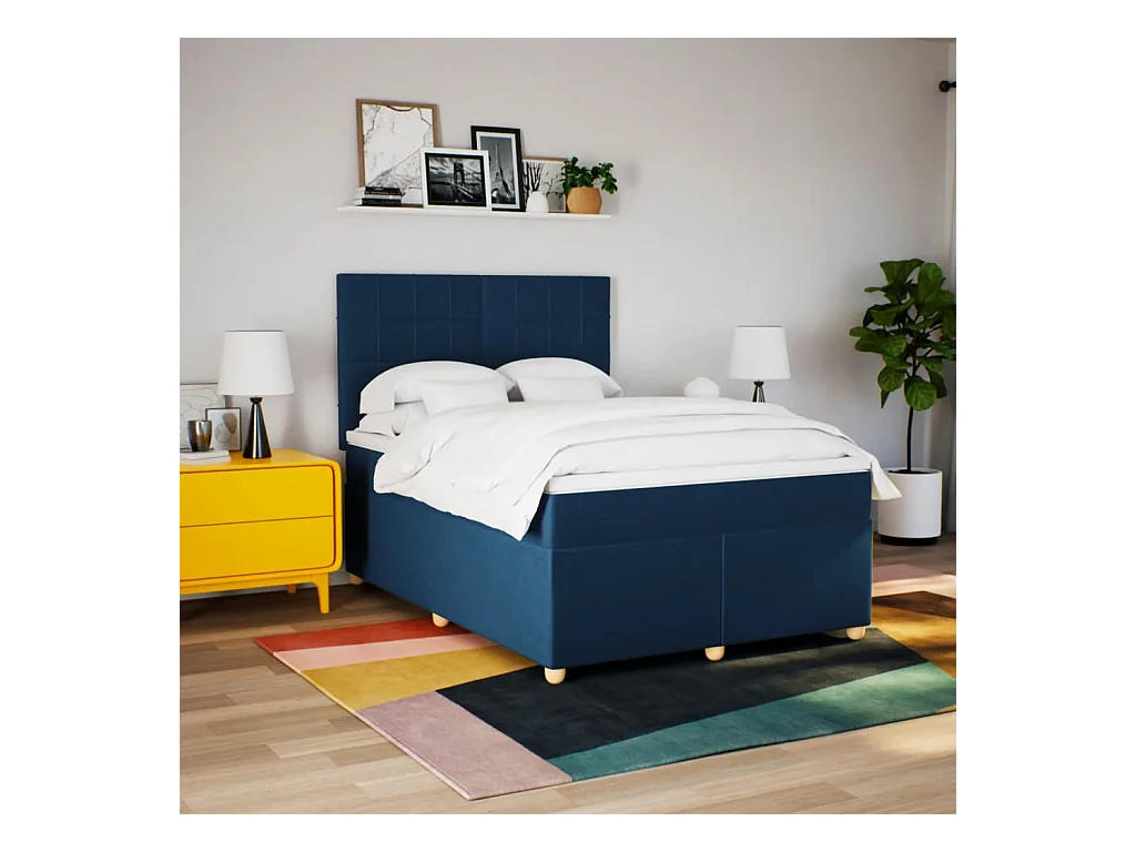 Sommier à lattes de lit avec matelas Bleu 140x200 cm Tissu
