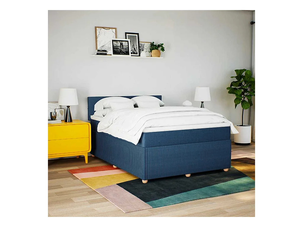 Sommier à lattes de lit avec matelas Bleu 160x200 cm Tissu
