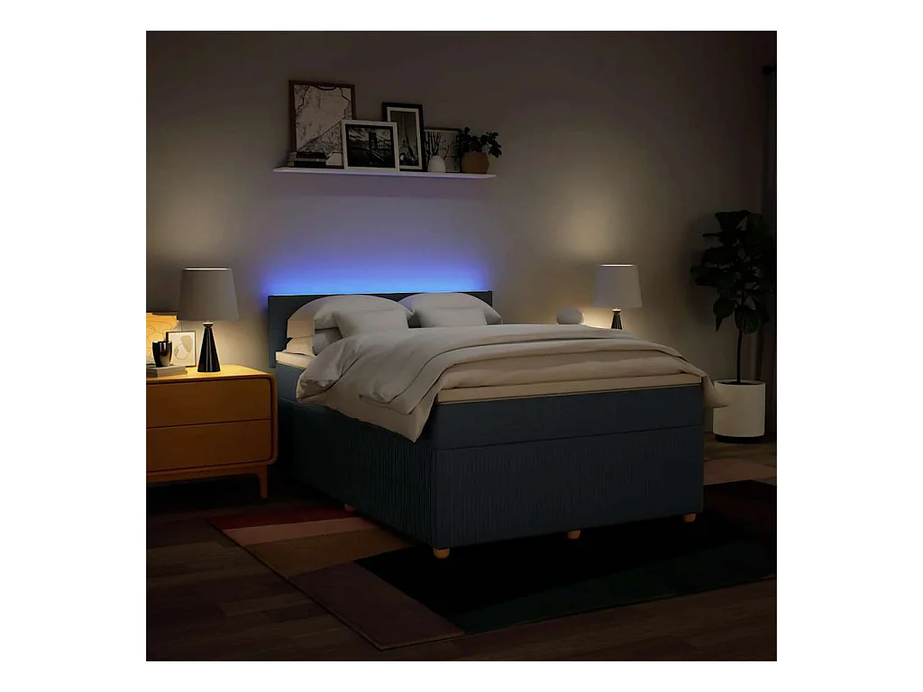 Sommier à lattes de lit et matelas bleu 160x200 cm velours