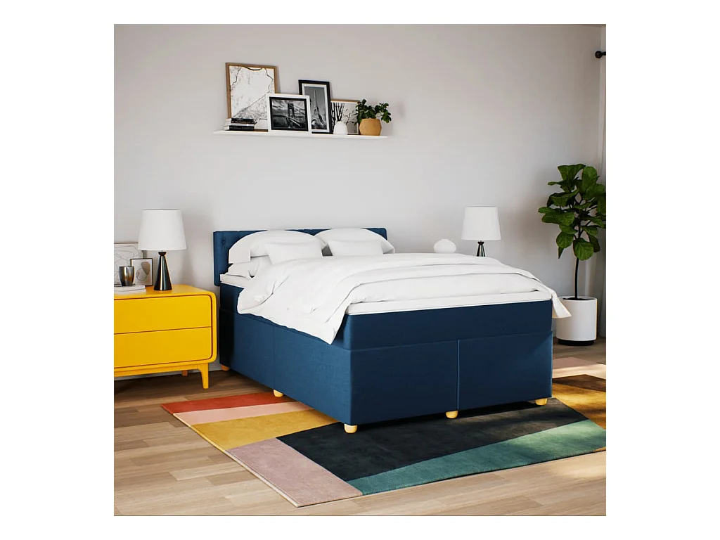 Sommier à lattes de lit avec matelas Bleu 160x200 cm Tissu