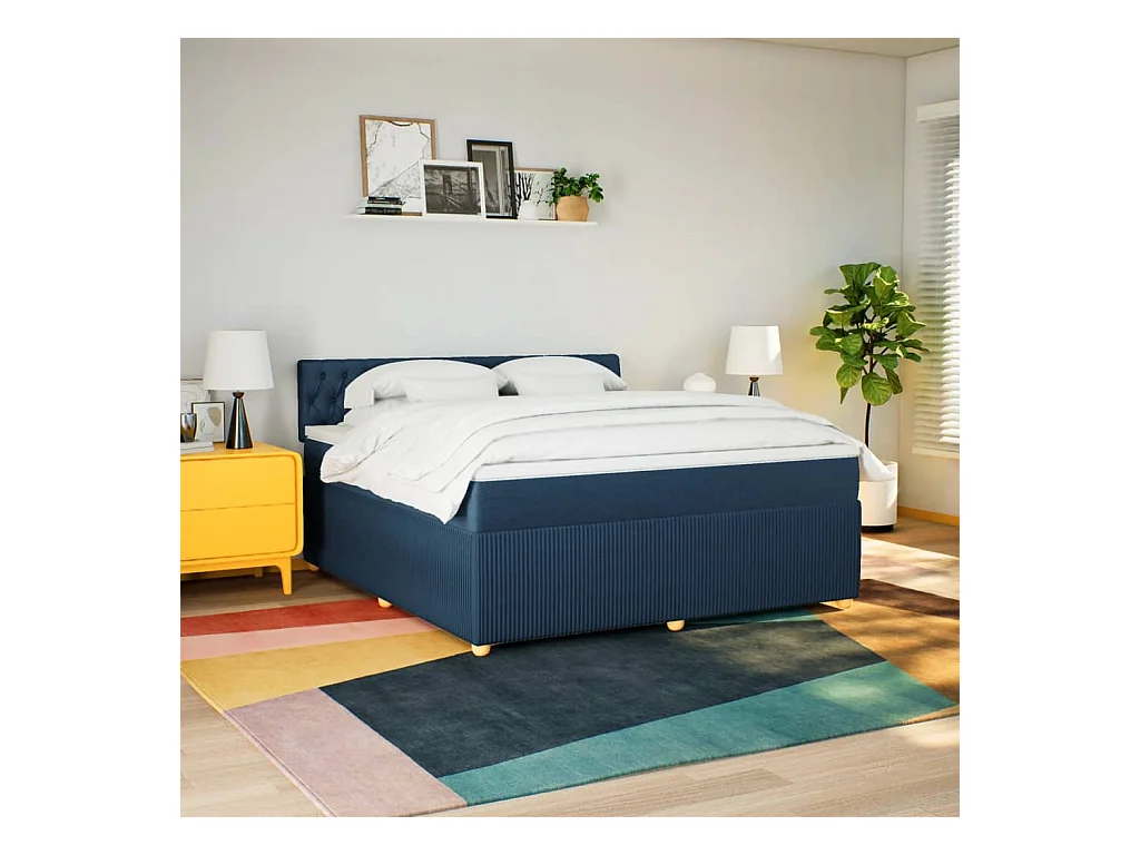 Sommier à lattes de lit et matelas bleu 180x200 cm velours